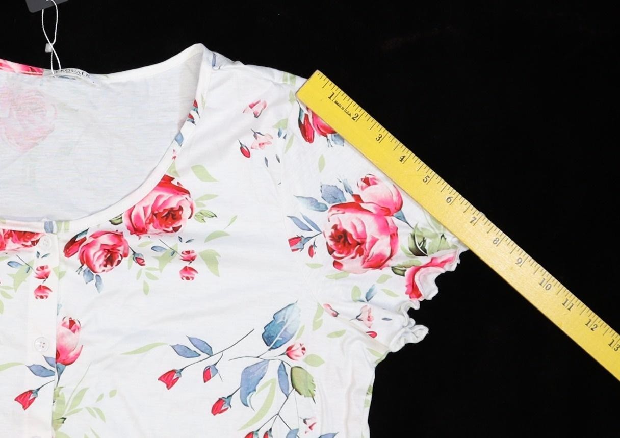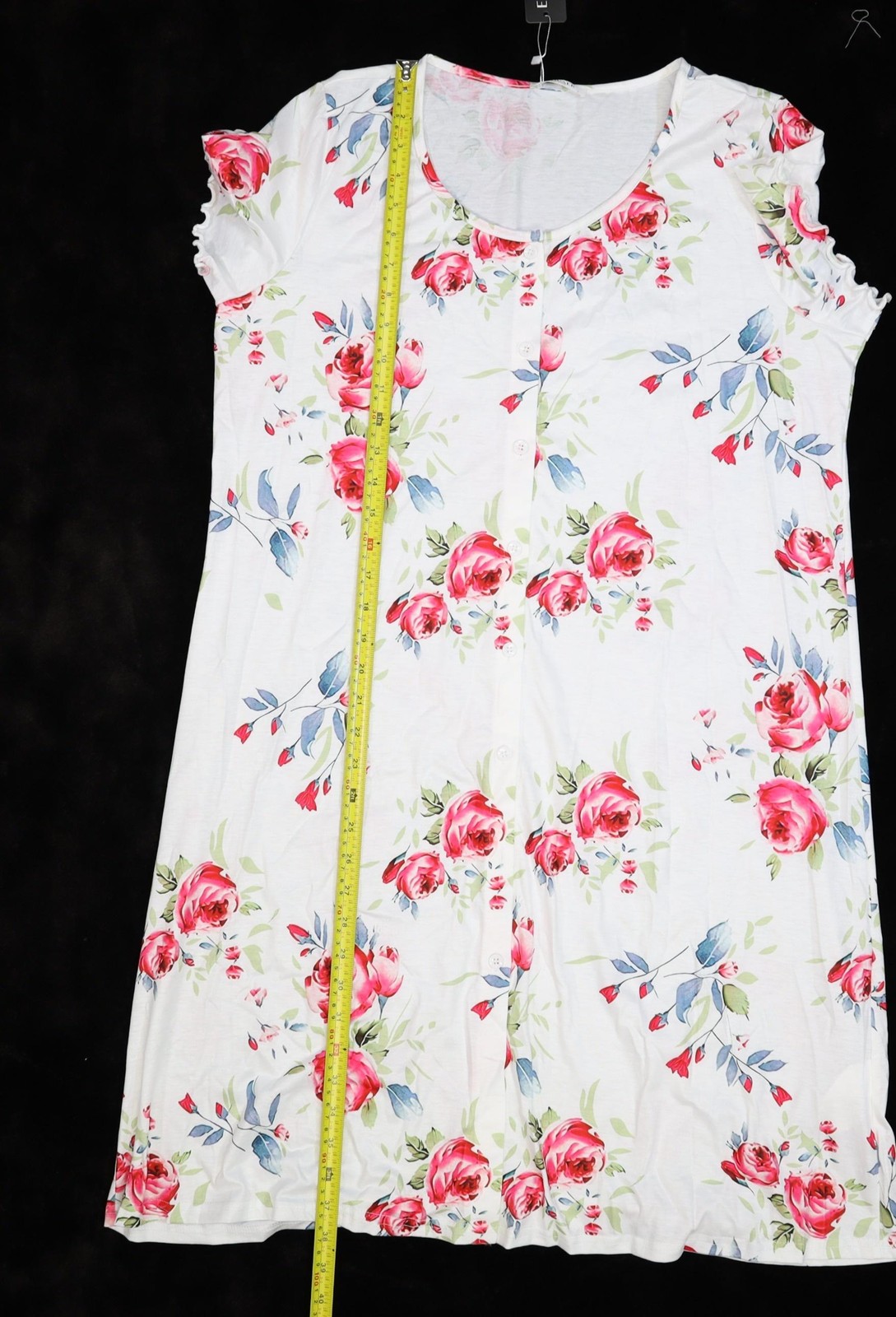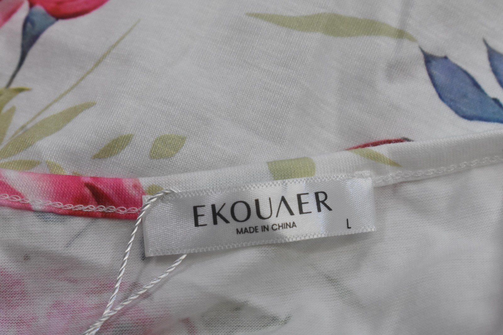 как выглядит Ekouaer Nightgown Womens Large White Floral Short Sleeve Button Front Sleepwear фото