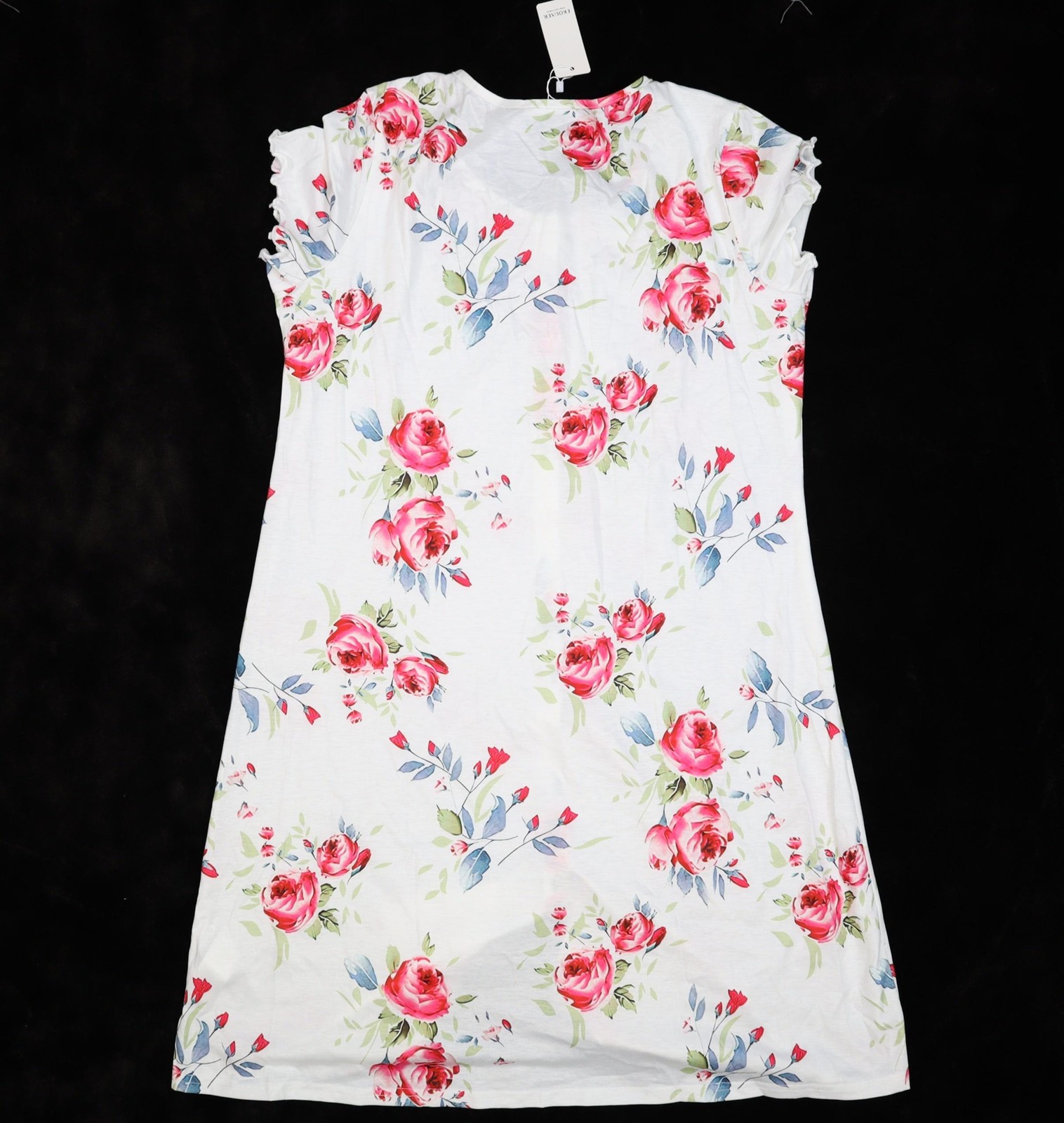 Ekouaer Nightgown Womens Large White Floral Short Sleeve Button Front Sleepwear
