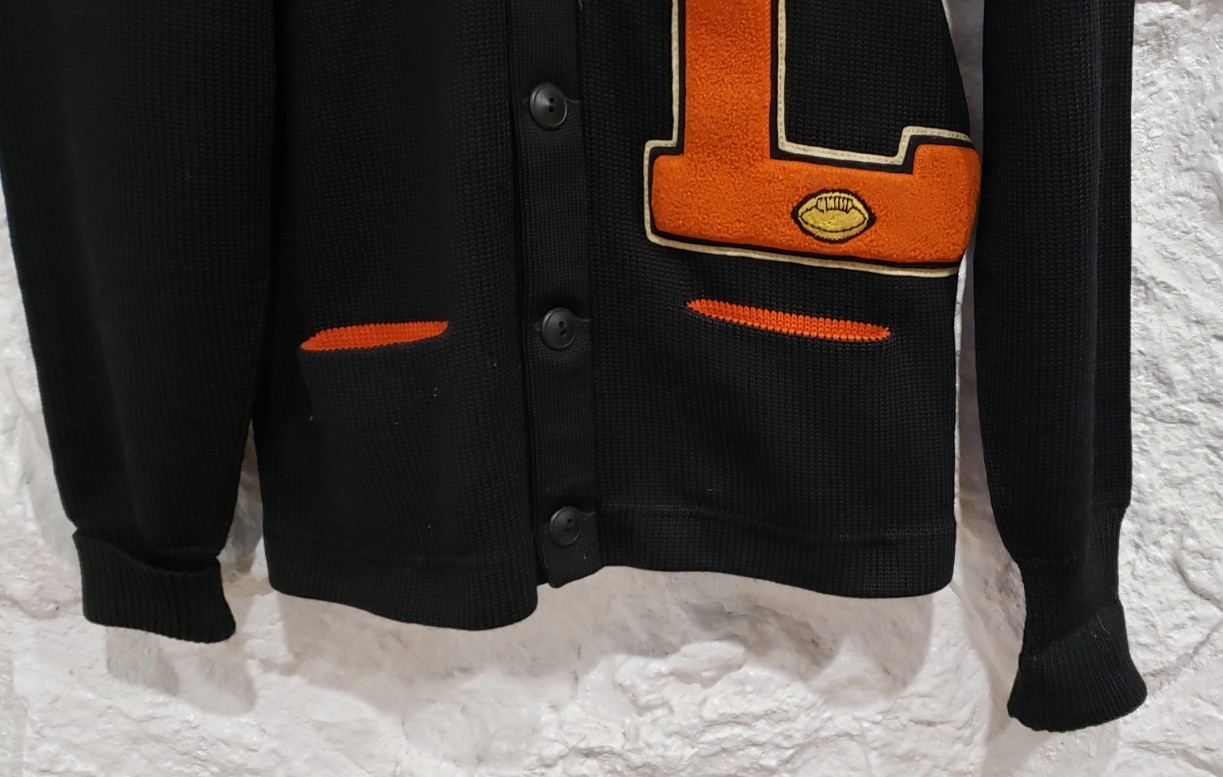 как выглядит Vintage 1950s Kandel Mills Black Wool Letterman Varsity Cardigan Sweater фото