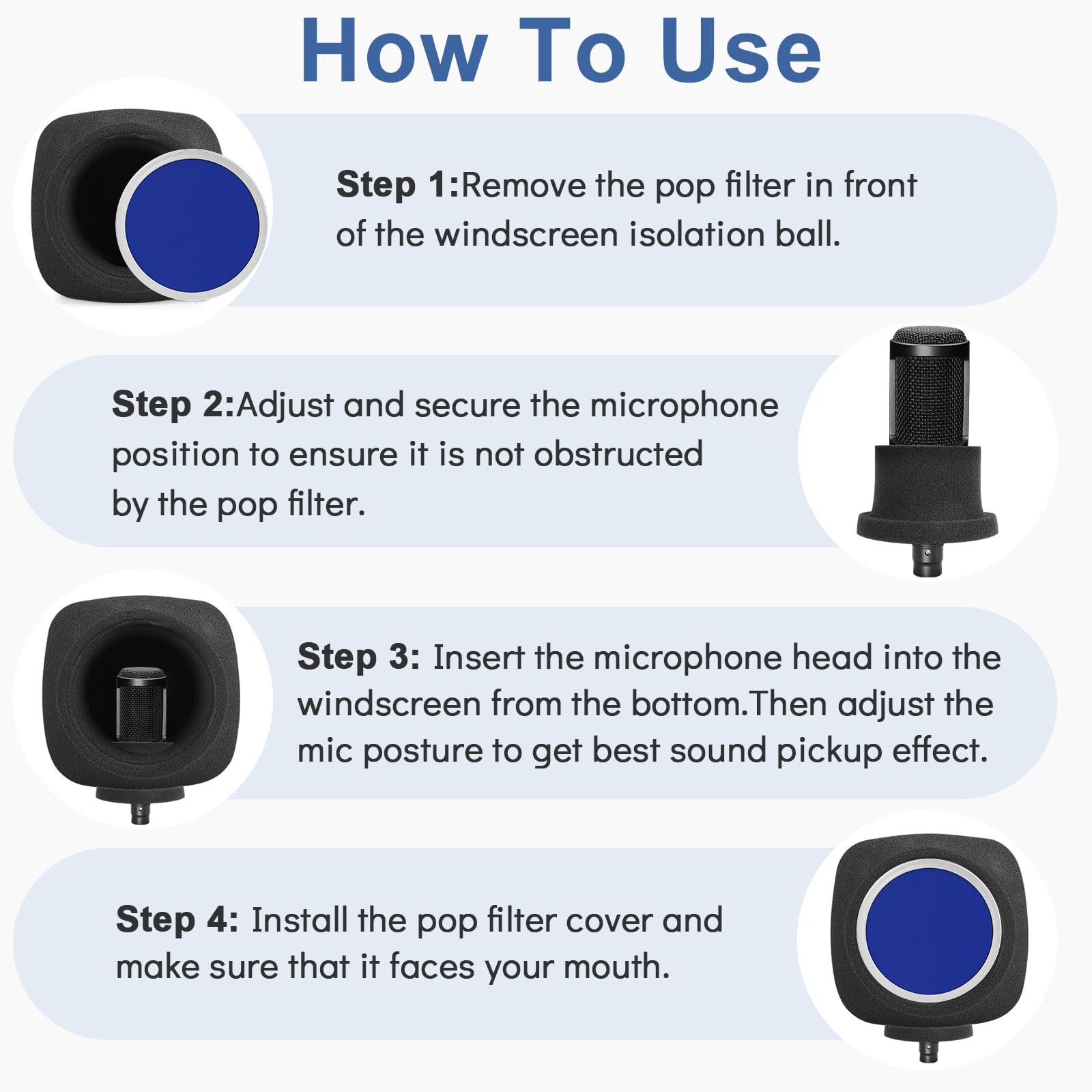 Microphone Isolation Ball, Microphone Isolation Shield Pop Filter for Microph...