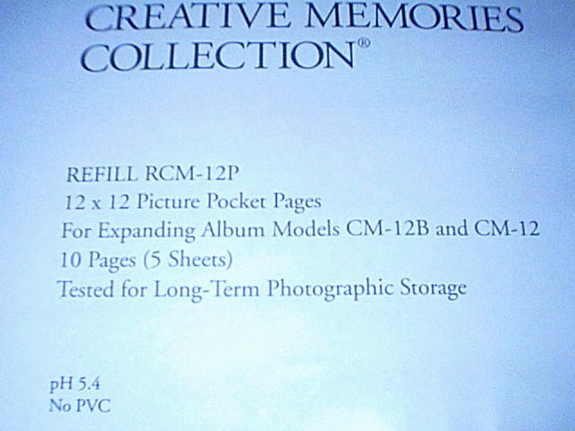 CREATIVE MEMORIES Refill RCM-12P 12 x 12 Picture Pocket Page 10 Pages 5 Sheets