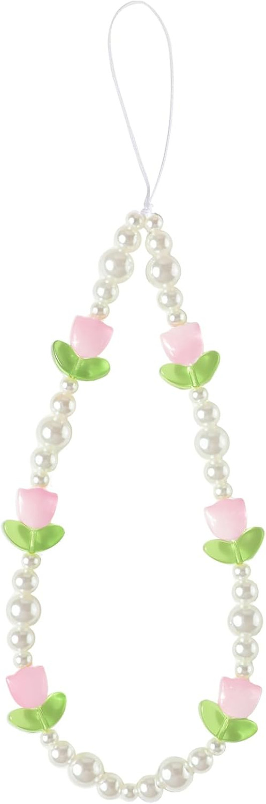 Beaded Phone Charms Cute Aesthetic Tulip Lanyard Strap Girl Wrist Chain, Phone K