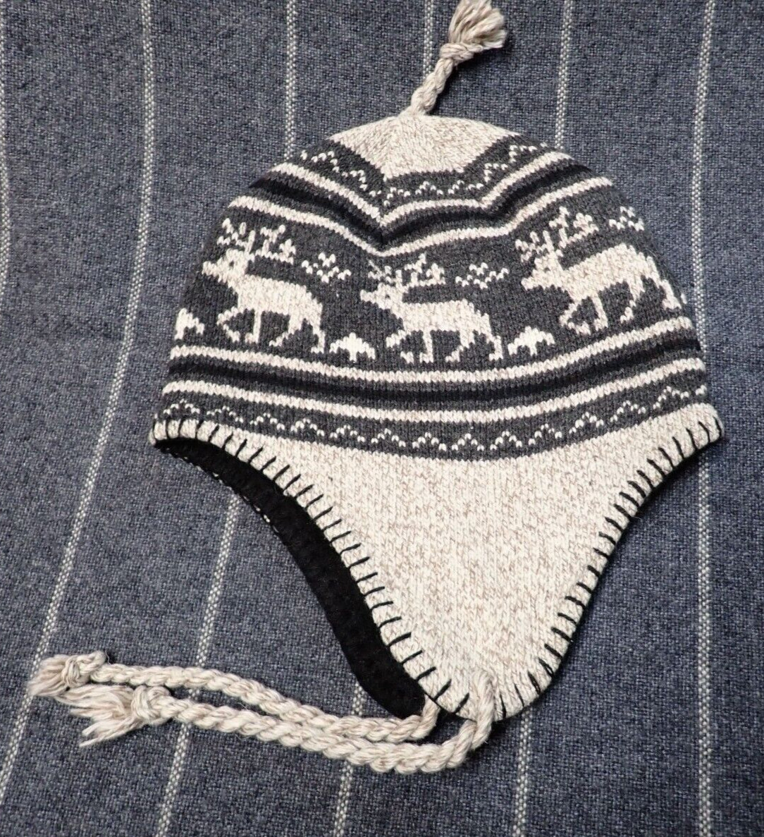 Knit Sherpa Wool Blend Unisex Hat w/ Thinsulate Fleece Lining and Deer Pattern
