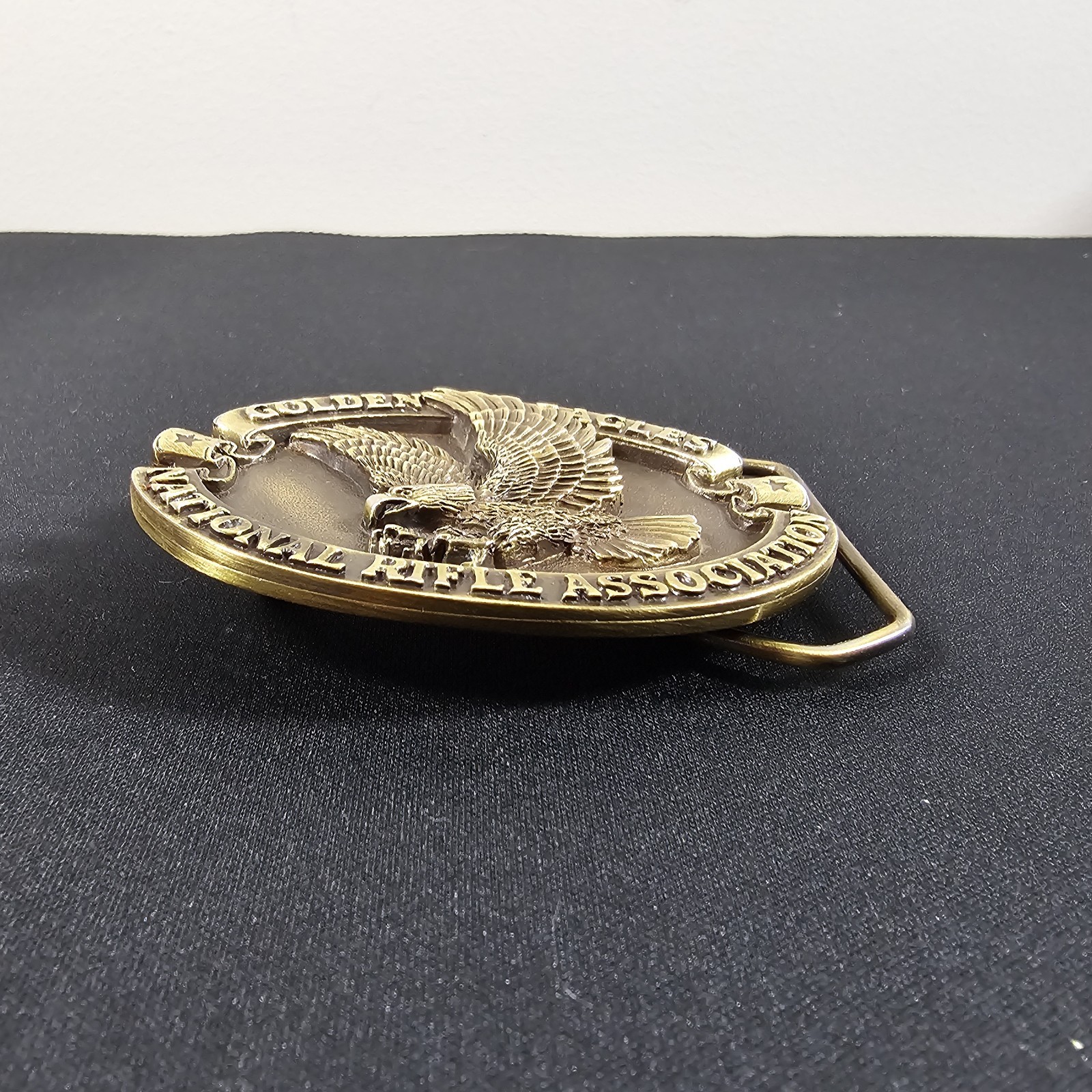 как выглядит Vintage NRA Golden Eagles Brass Belt Buckle Flying Eagles 3.5"X2.5" фото