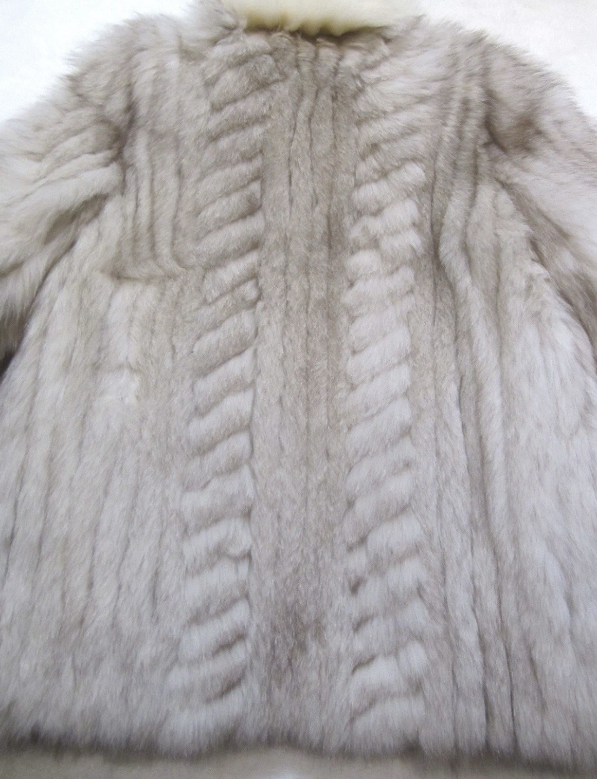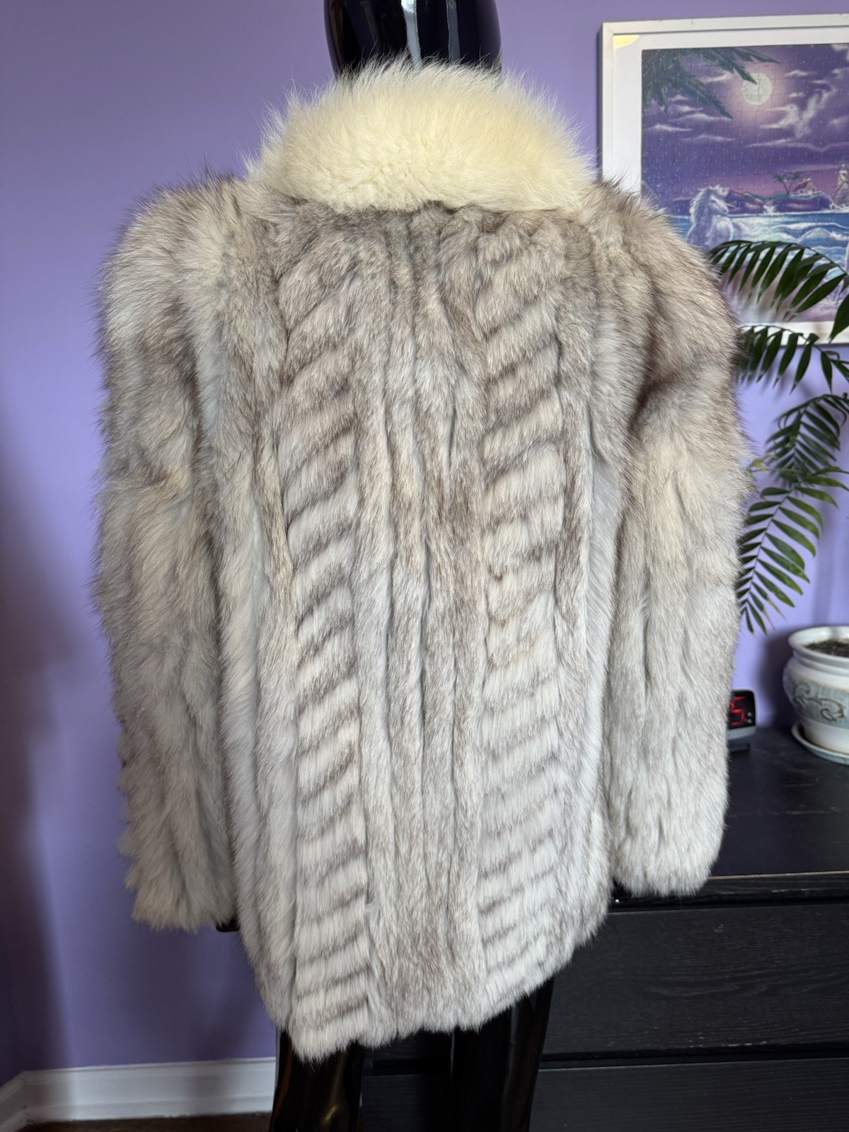 Saga Fox Genuine Blue Silver Fox Fur Coat With White Fox Trim Gorgeous sz Small