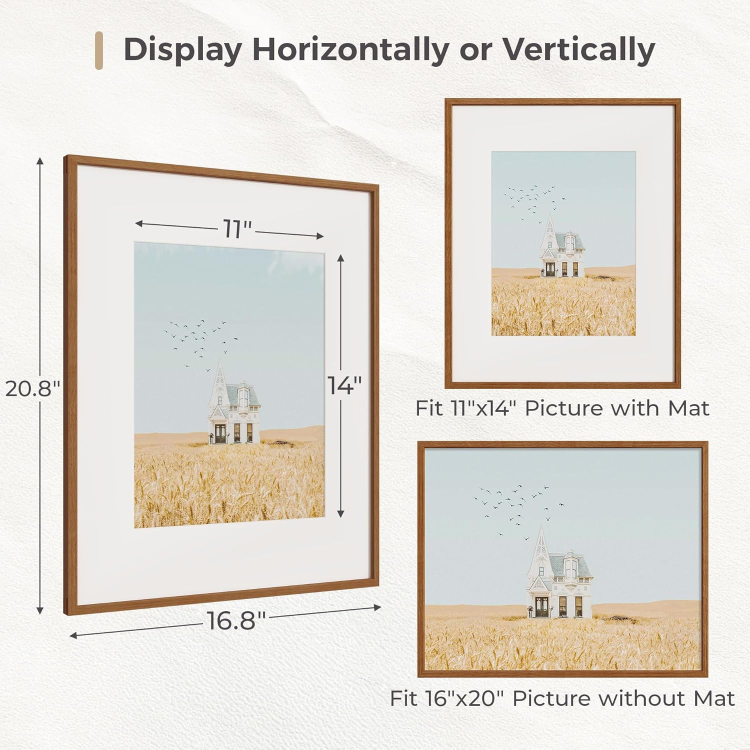 Natural Teak Wood 16x20 Picture Frame with HD Glass for 11x14 Photos