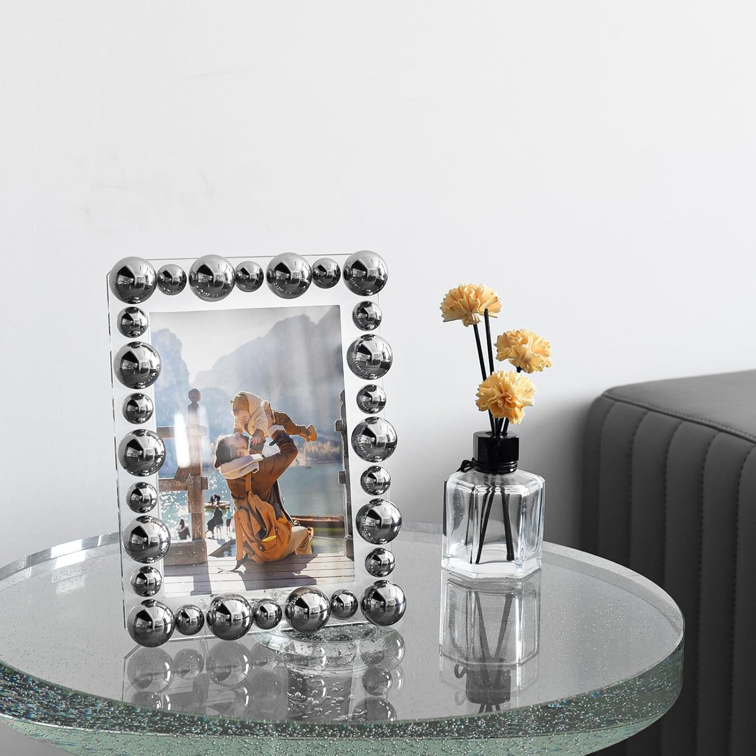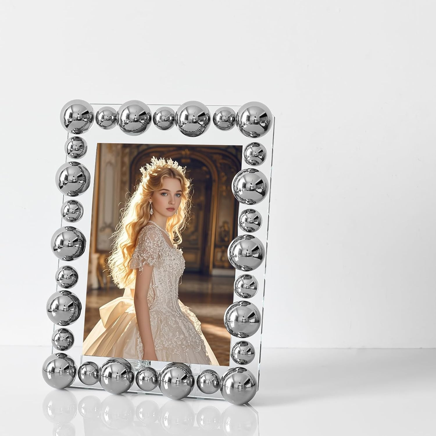 Elegant Silver 5x7 Crystal Picture Frame with Gift Box - Perfect for Weddings