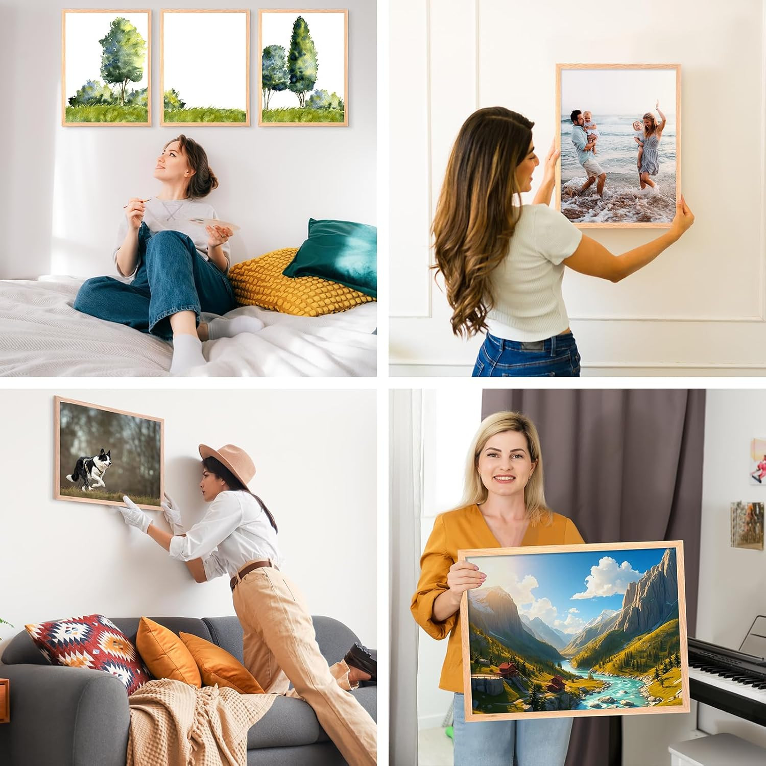 Beige Oak Wood Picture Frame Set - 6 Pack 12x16 for Home Office Decor