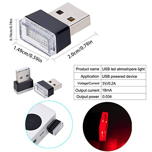 2 Pcs Universal Mini USB LED Car Interior Ambient Atmosphere Lights for Red