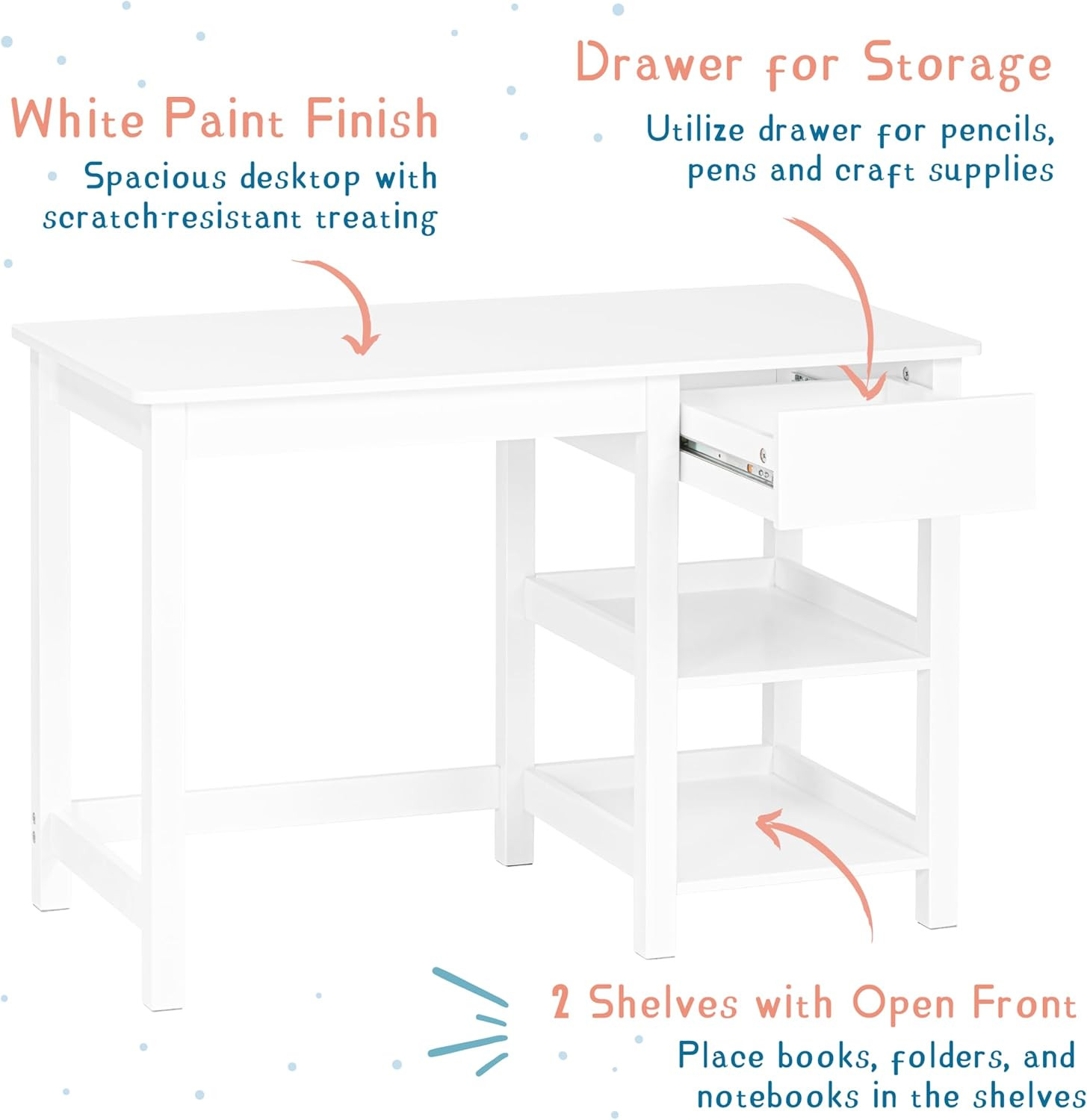 Kids Desk and Chair Set, Kids Study Desk with Drawer and Shelves, Children Woode