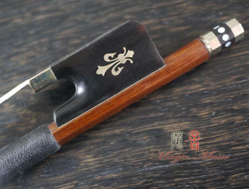 как выглядит SILVER PERNAMBUCO Viola Bow with Fleur-de-Lys Inlaid Ebony Frog 4/4 Free ship фото