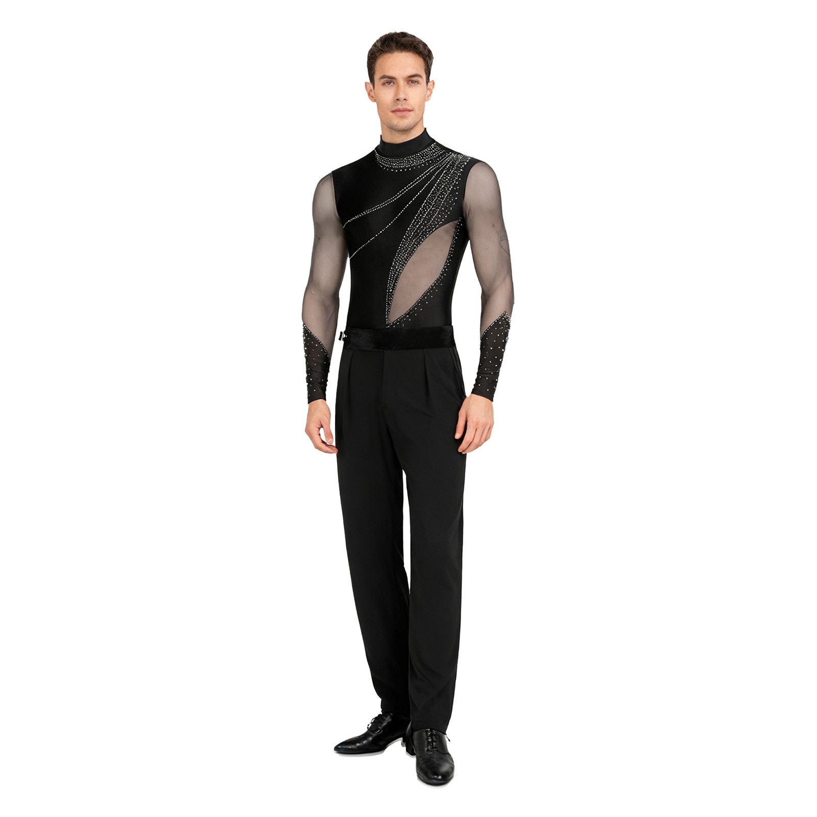 Mens Dancewear Tango Dance Outfit Costume Set Leotard Long Sleeve Waltz Mesh