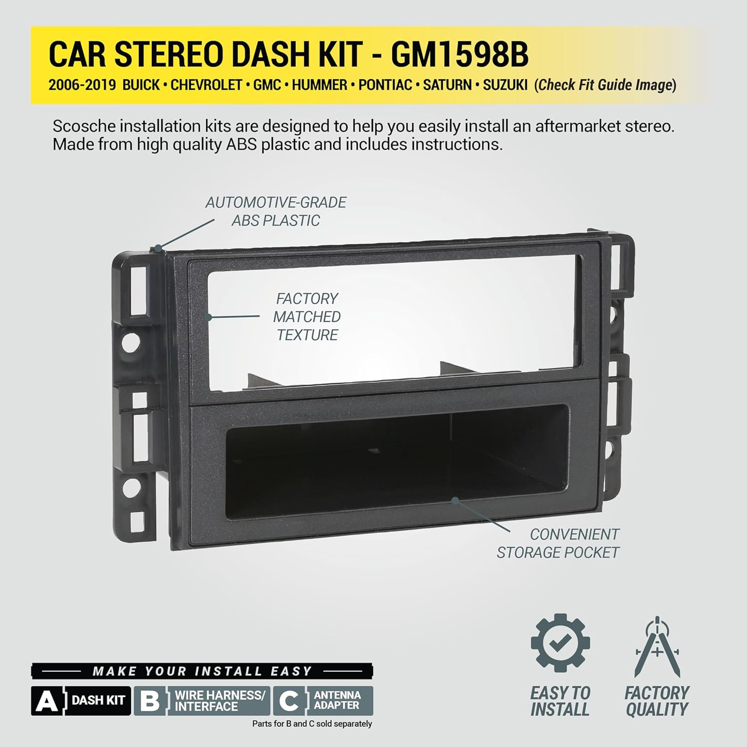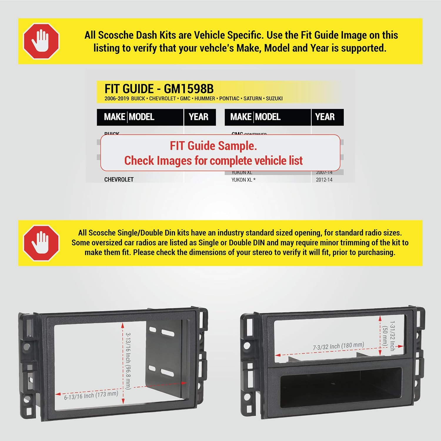 GM1598B Double DIN or Single DIN Pocket Radio Install Dash Kit Compatible with