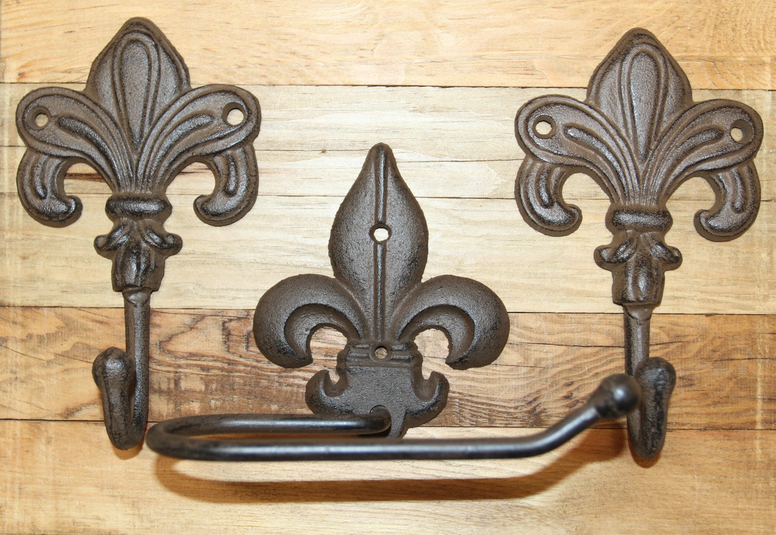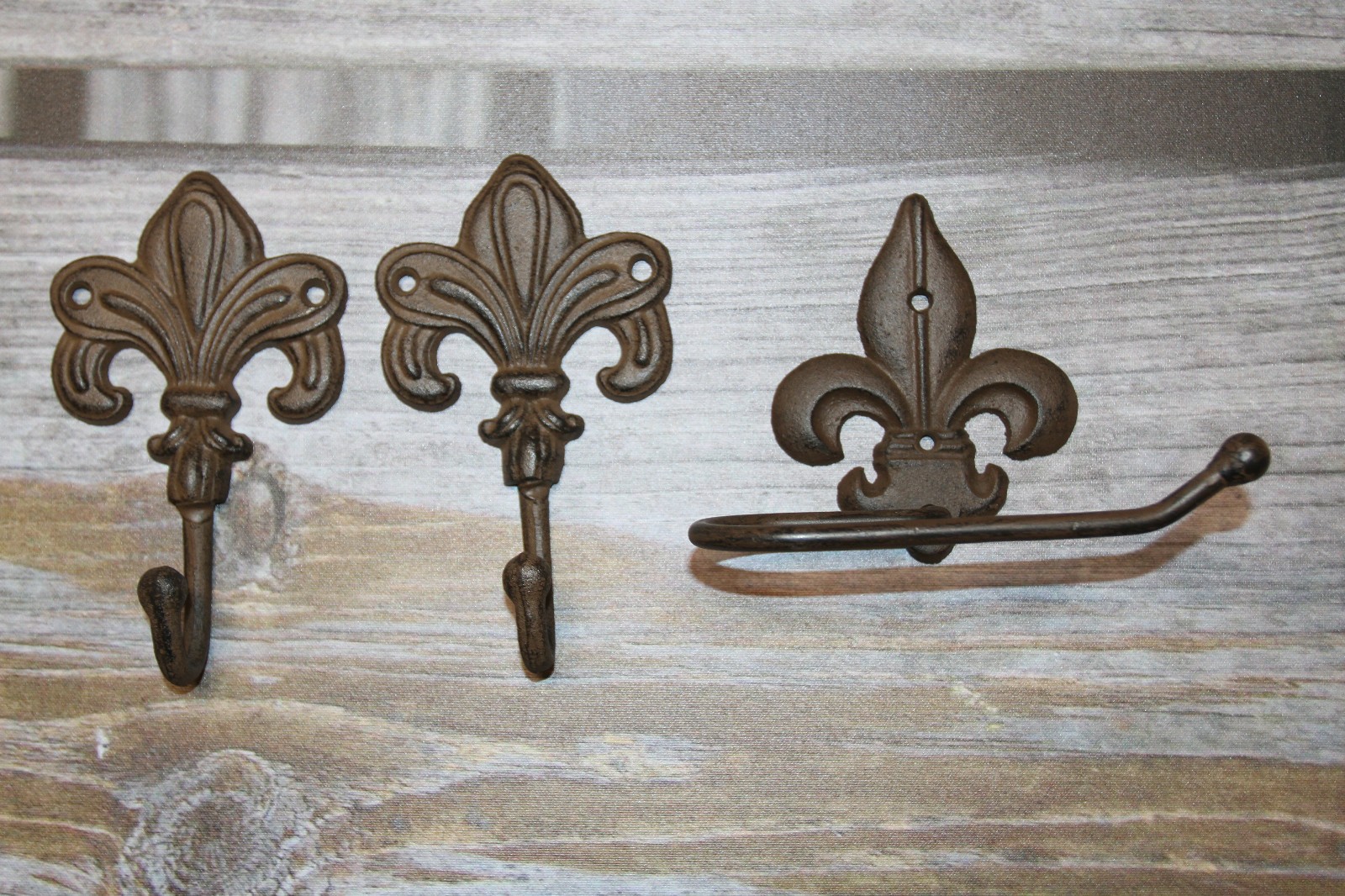 FLEUR DE LIS Combo,2 Wall Hooks,1 Toilet Paper Holder,Bathroom Decor,Gifts