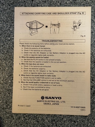 Sanyo Sportster M-G95 Box Paperwork ONLY 1980s AM/FM Cassette Player Walkman