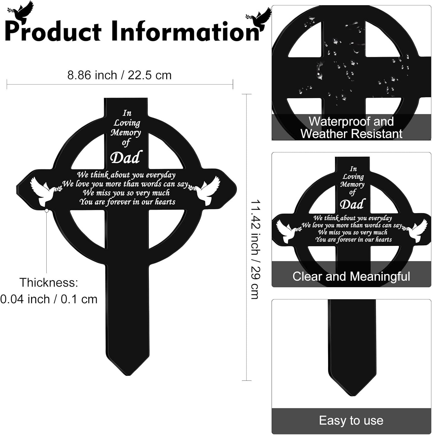 • Cross Memorial Stakes Grave Decorations for Cemetery Sympathy Waterproof Metal P