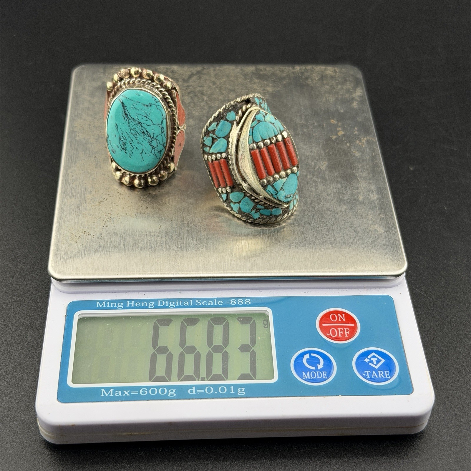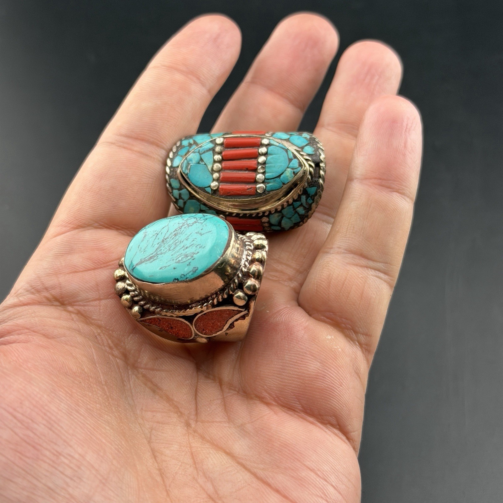 Two Beautiful Turquoise Coral Handmade Tibetan Nepali Stunning Tribal Rings
