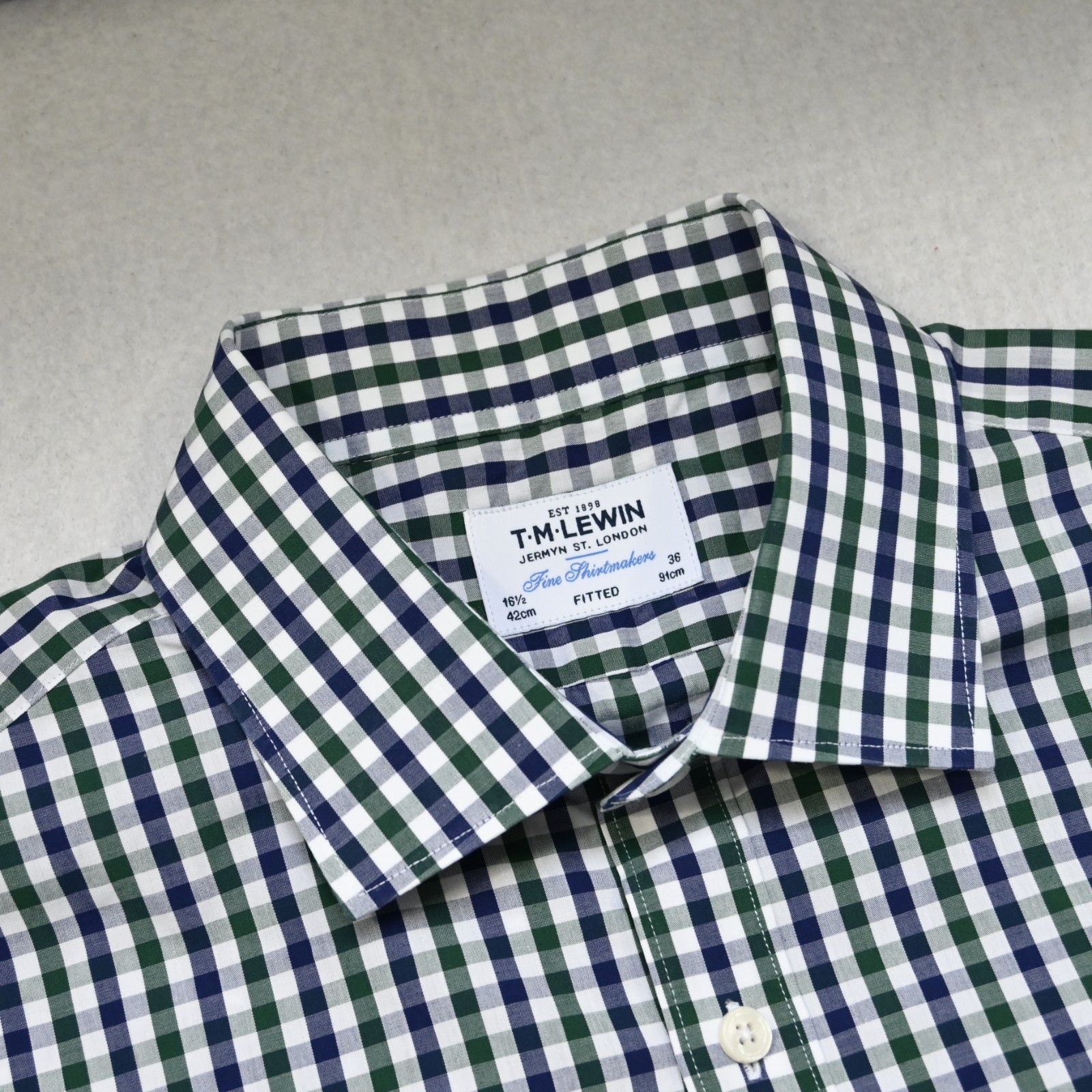 как выглядит T.M. Lewin Dress Shirt Plaid Fitted Long Sleeve Button Up Men Size 16.5-36 Large фото