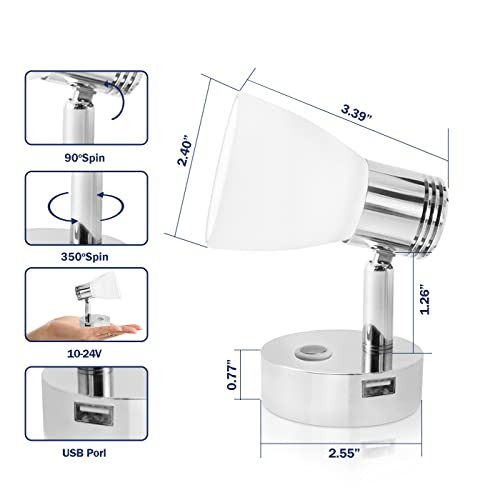12V Boat Interior Reading Light USB Port, 3W DC RV Polished Finish with USB