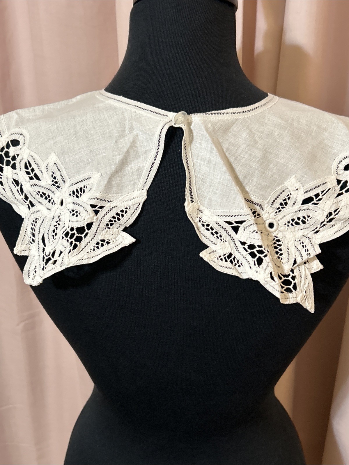 Vintage Antique Battenburg Tape Lace Collar White Square Hand Made Flower