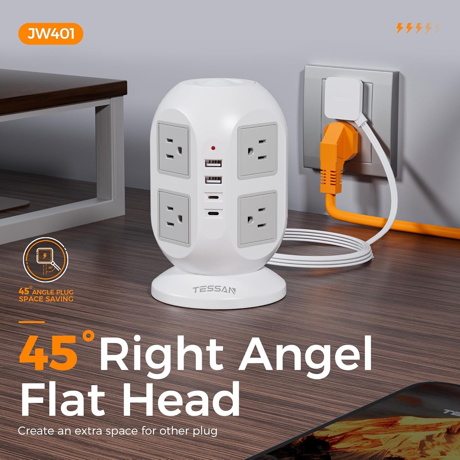 Особенности: Cord, Indicator Light, On/Off Switch, Resettable Circuit Breaker, Right-Angle Plug, Thermal Overload Protection, USB Charger, Safe Cover, Lightning Protection, OverCurrent Protection, Ultra Thin Plug, Slim Cord, USB C Port, Type C Outlet, Surge Protection, Stable Base, Widely-spaced Outlet, Space Saving