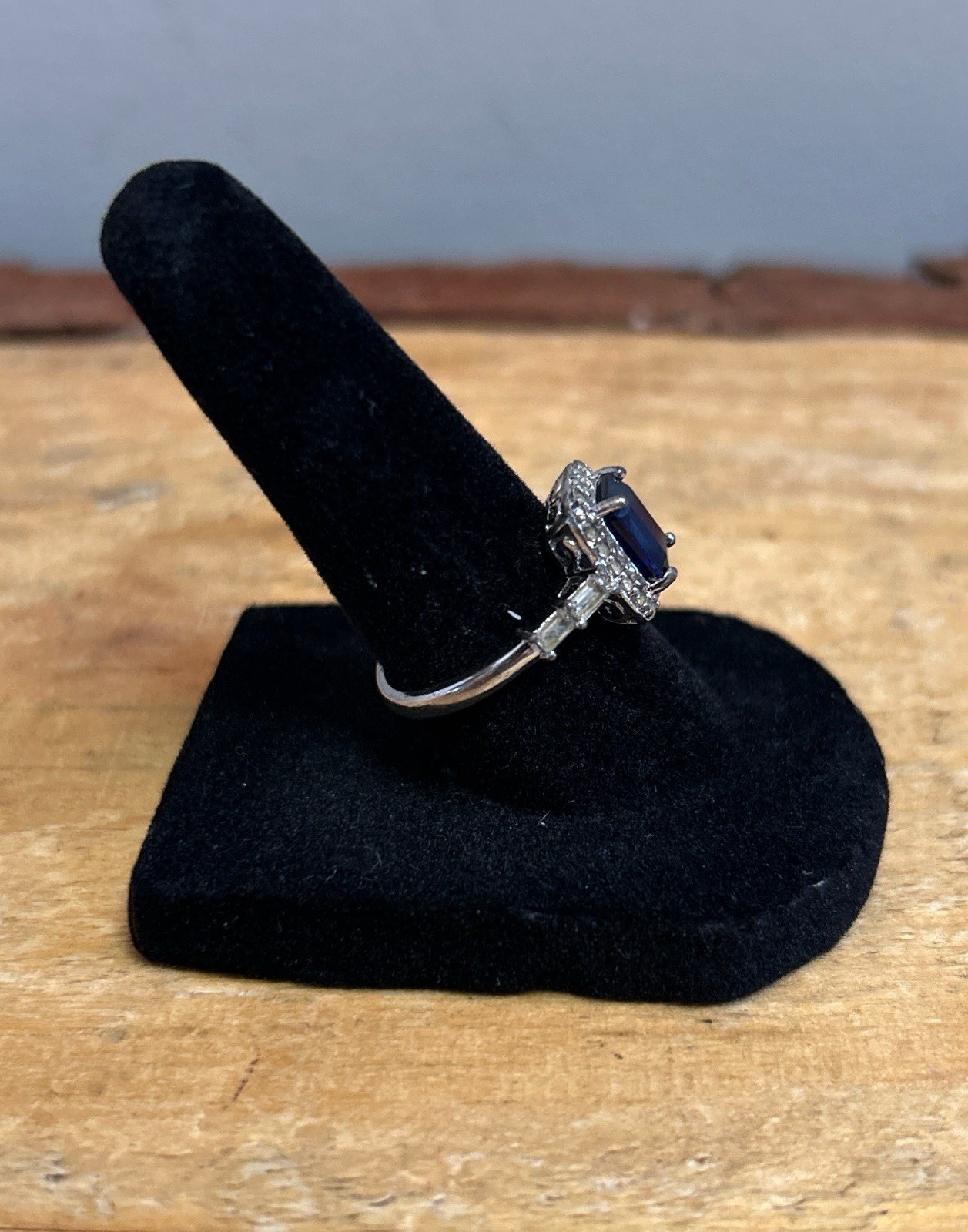 как выглядит Ladies Ring,Lab Created Sapphire Side Stones, Size 7, 925 Sterling Silver фото