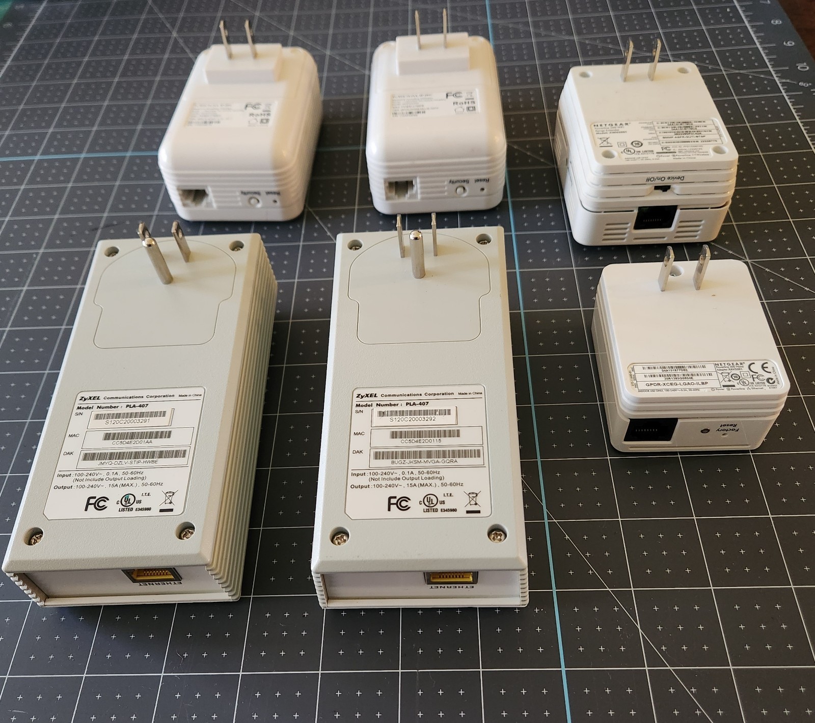 Lot of 6 Powerline Network Adapters 2-Netgear AV500 2-Medialink 2-ZyXEL PassThru