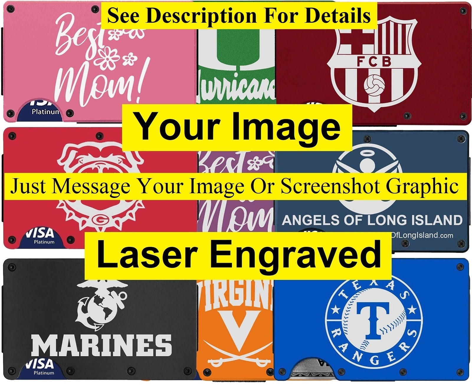 Custom Your Image Personalized Laser Engraved RFID Blocking Wallet Womens Men D7
