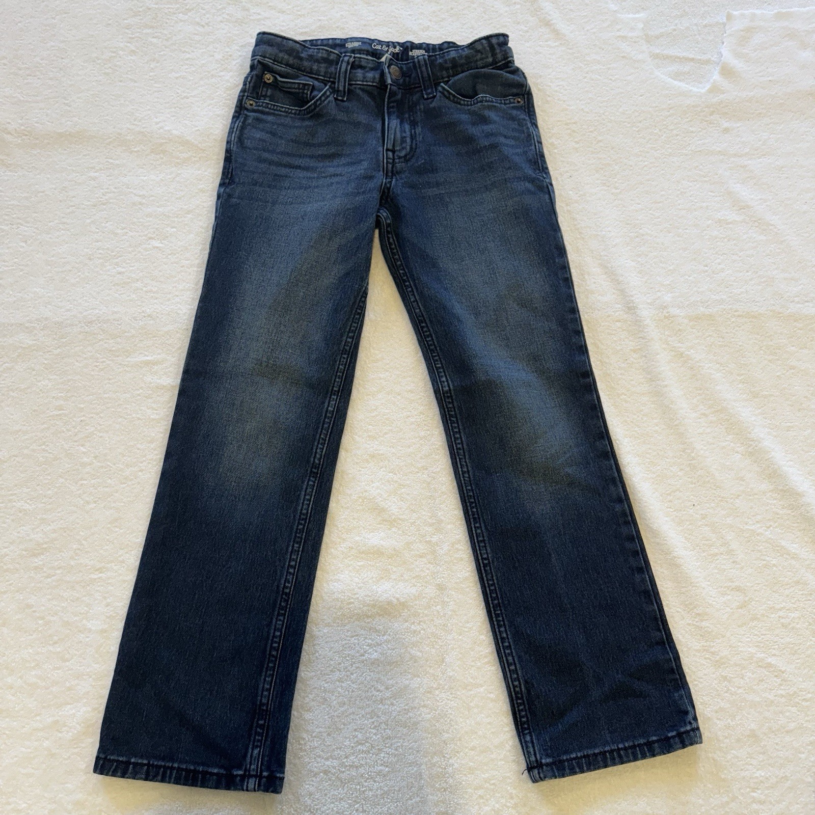как выглядит Cat And Jack Straight Recto Stretch Navy Dark Wash Jean Adjustable Waist Boys 10 фото