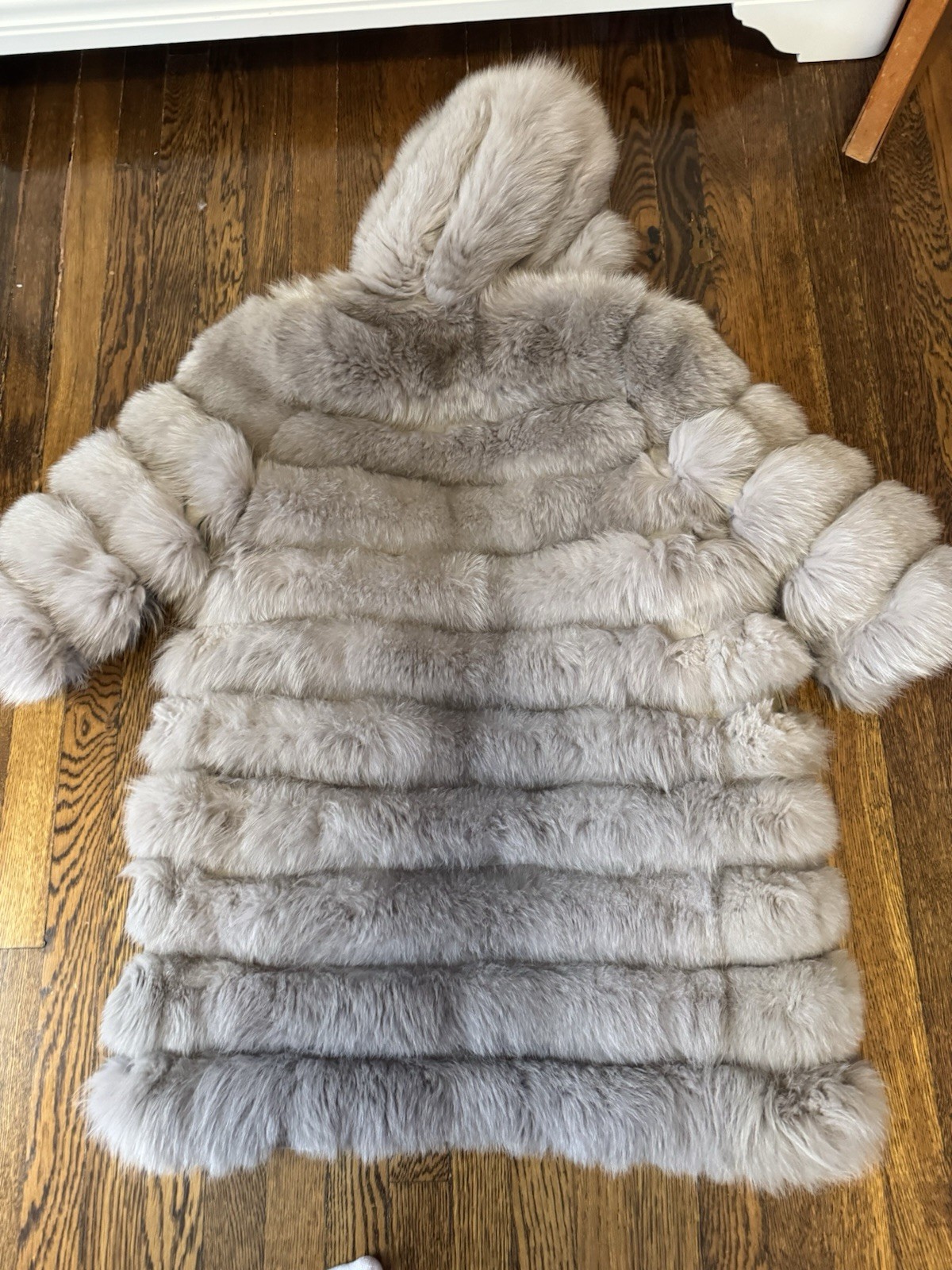 как выглядит Luxury Genuine Blue Fox Ash Fur Coat Size With Hood фото