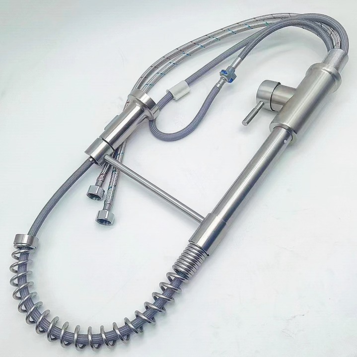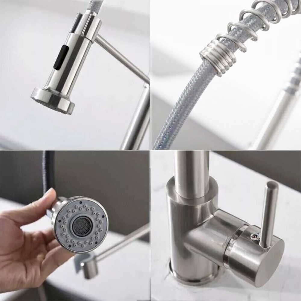 Kitchen Sink Faucet Brushed Nickel Single Handle Swivel Pull Down Sprayer Mixer