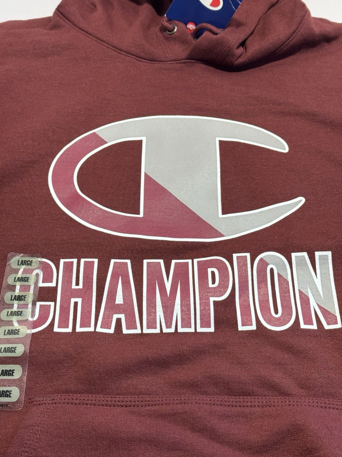 Champion Men's Script Logo Powerblend Hoodie Size Large Color Maroon NWT