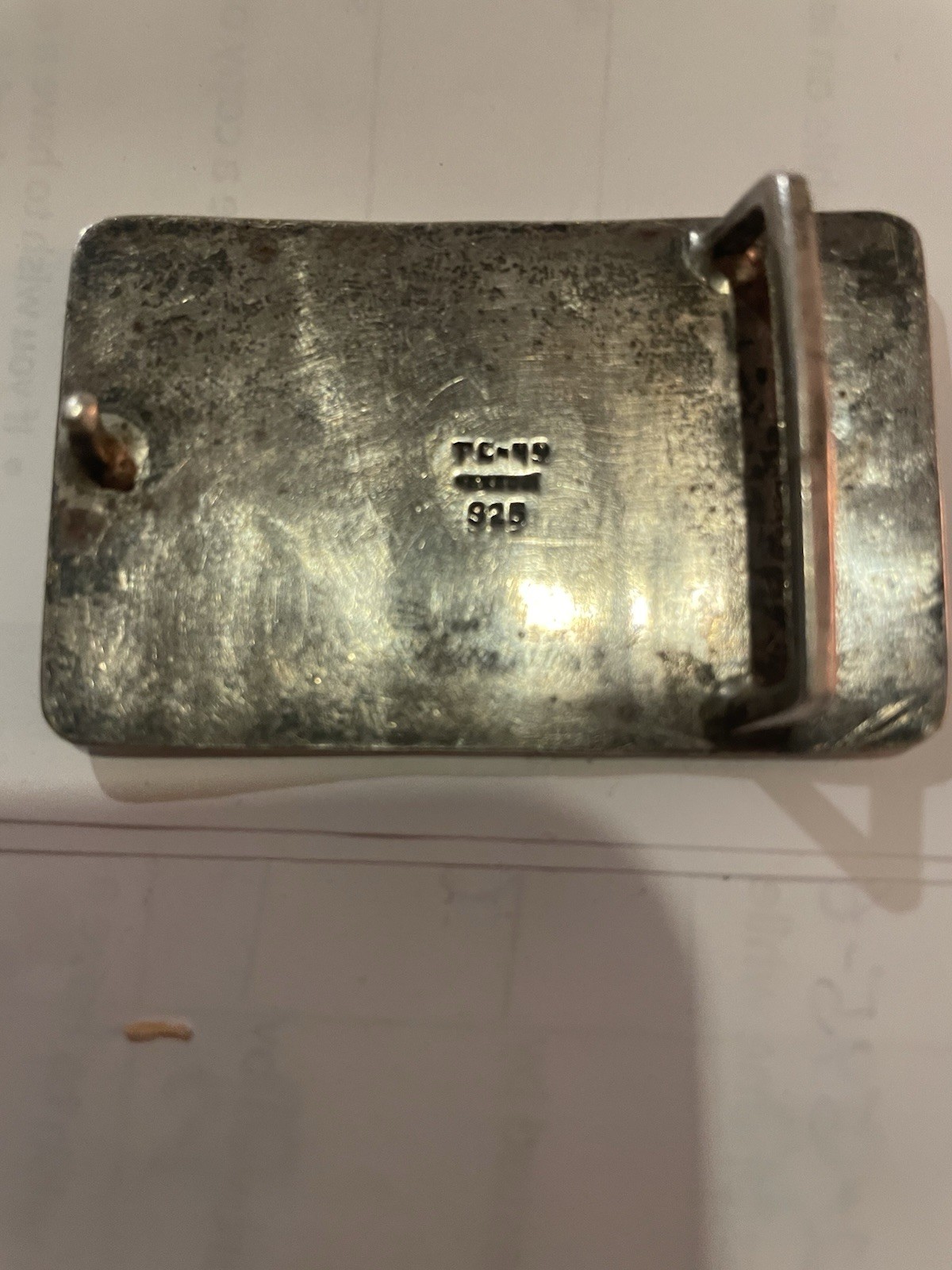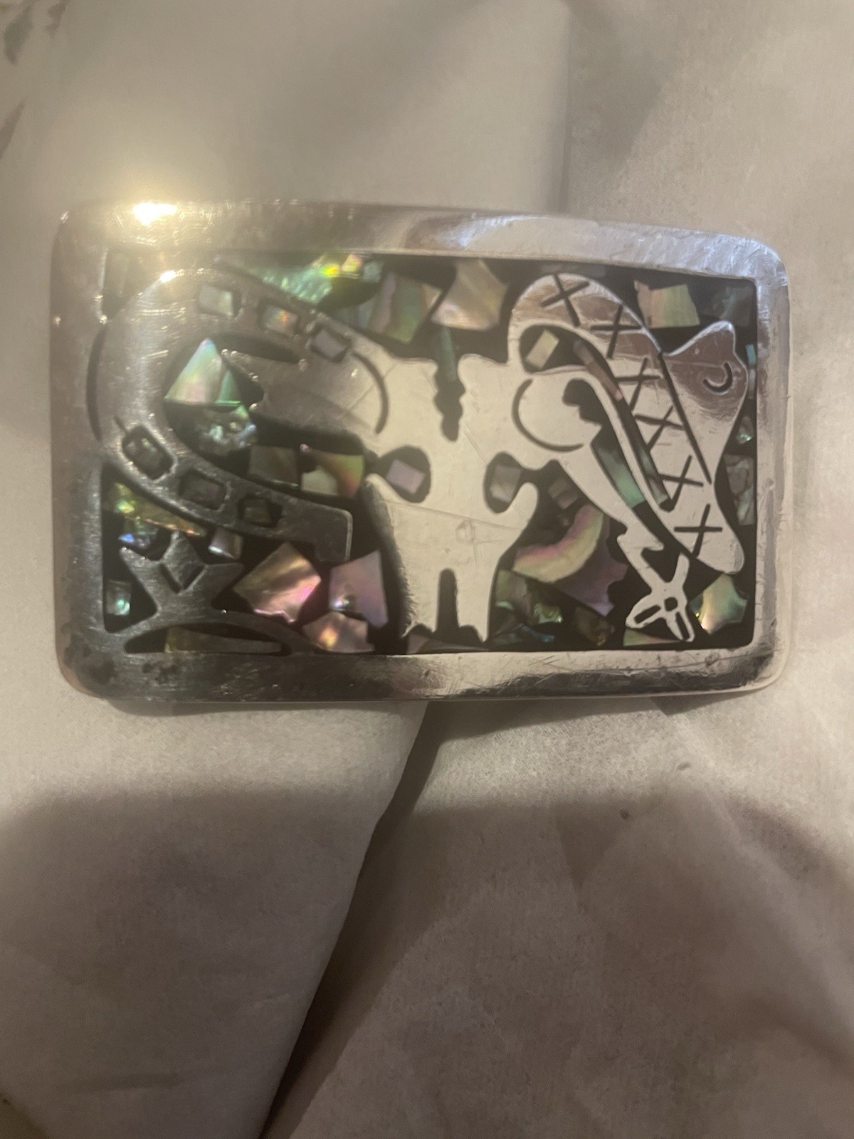 как выглядит Mexican Sterling Silver And Abalone Vintage Mexican Belt Buckle фото