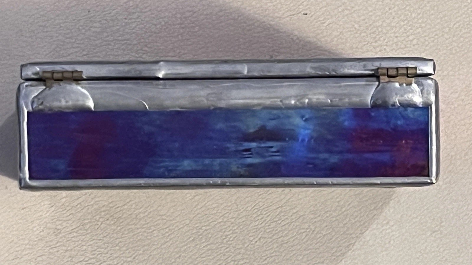 • Vintage Stained Glass, Hinged, Iridescent Mirrored Trinket Jewelry Box W/heart