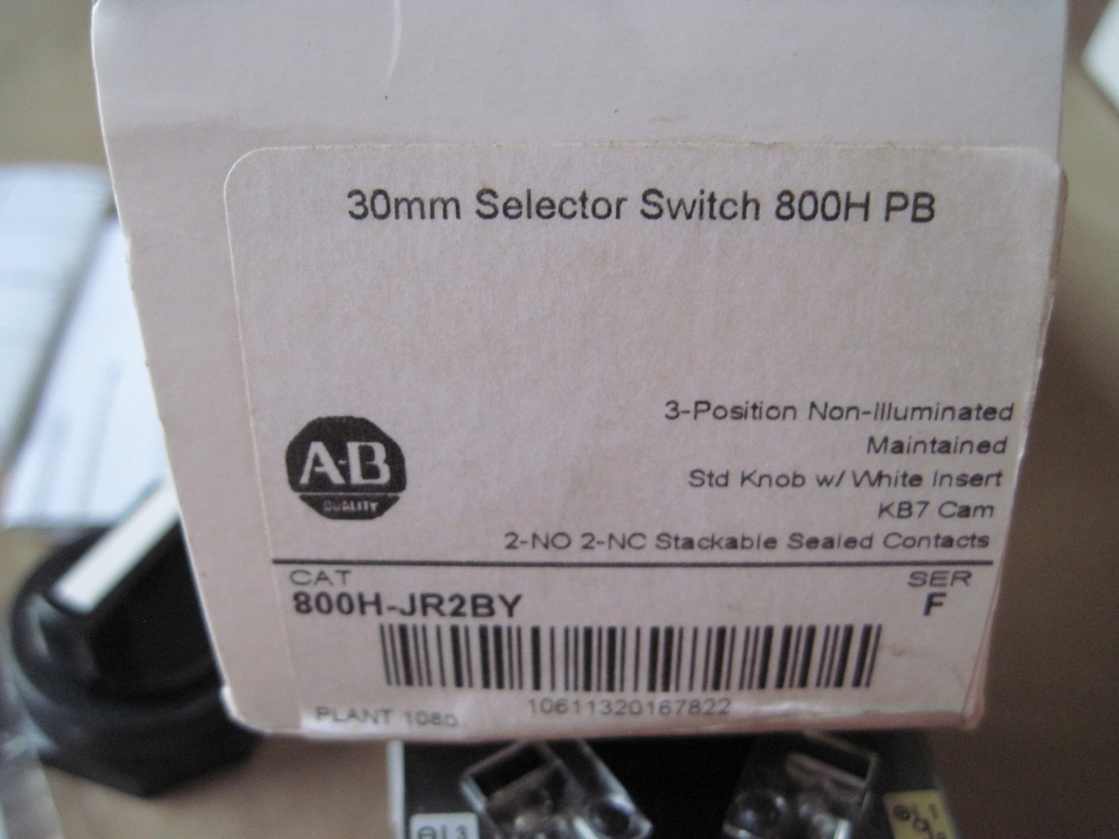 Allen-Bradley 800H-JR2BY Ser. F 3-Position Selector Switch, 30mm, 2-NO, 2-NC NEW