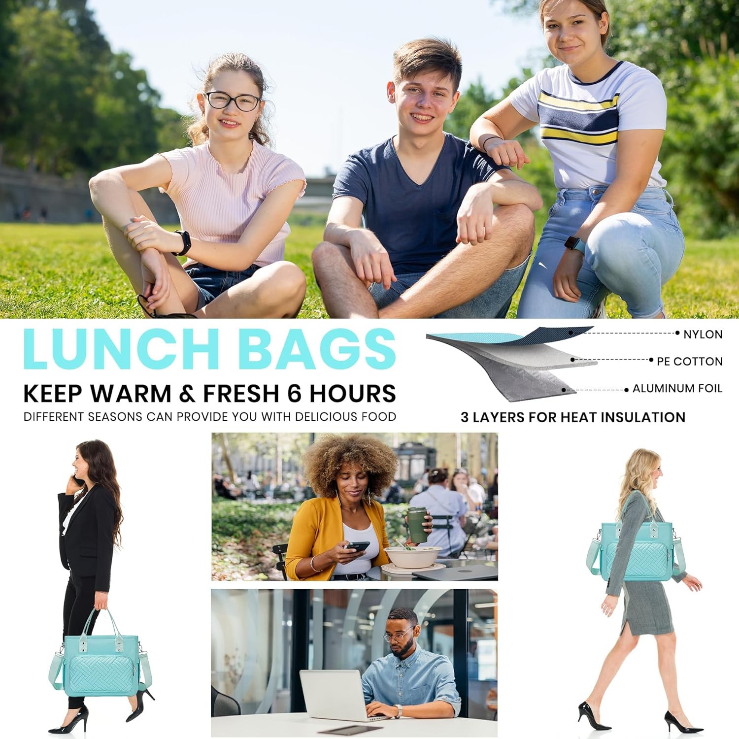 как выглядит Lunch Box for Women, Large Womens Lunch Bags with an Adjustable Shoulder Strap, фото