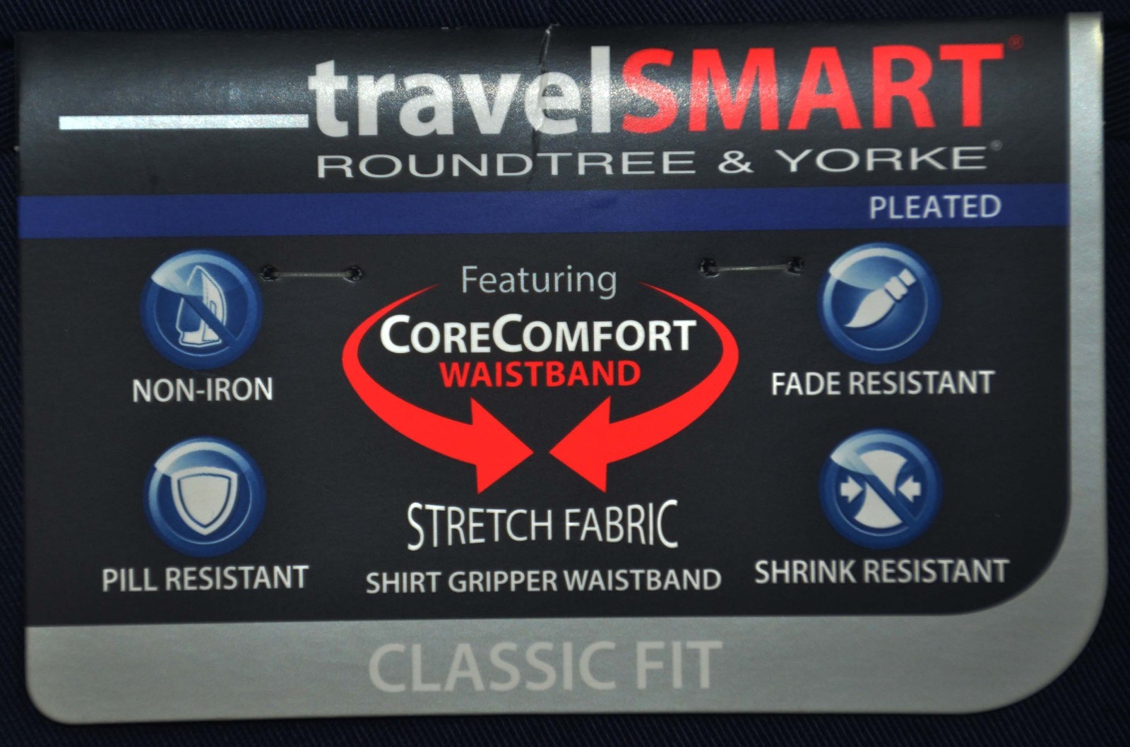 NWT Men's 36x36 Navy Roundtree Yorke TravelSmart Ultimate Comfort Pleated Pant