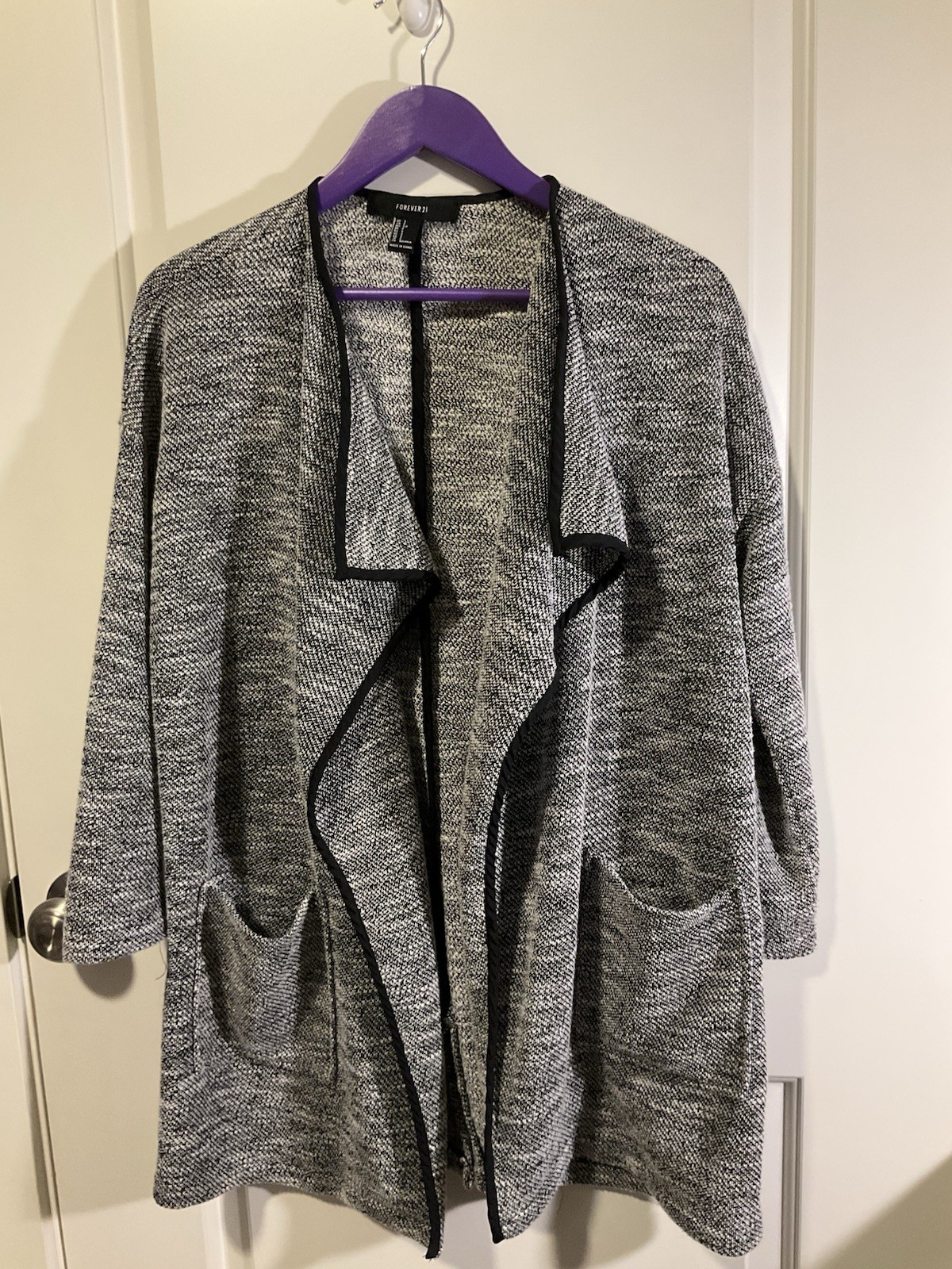 как выглядит Size S FOREVER 21 Open Front Cardigan Black/White Open Knit фото