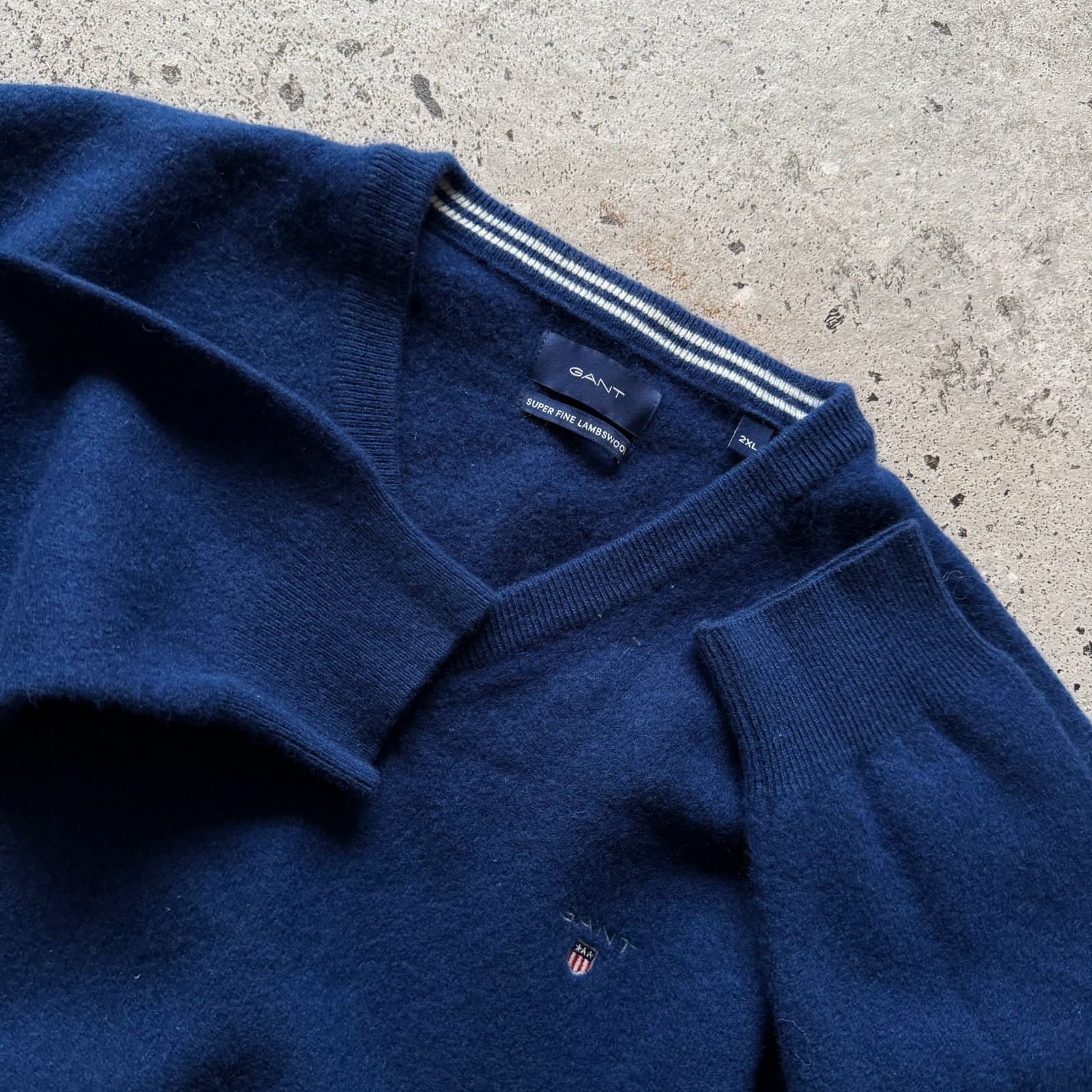 как выглядит Gant Mens Blue Super Fine Lambswool V-Neck Knit LS Sweater Casual Size - M/L фото