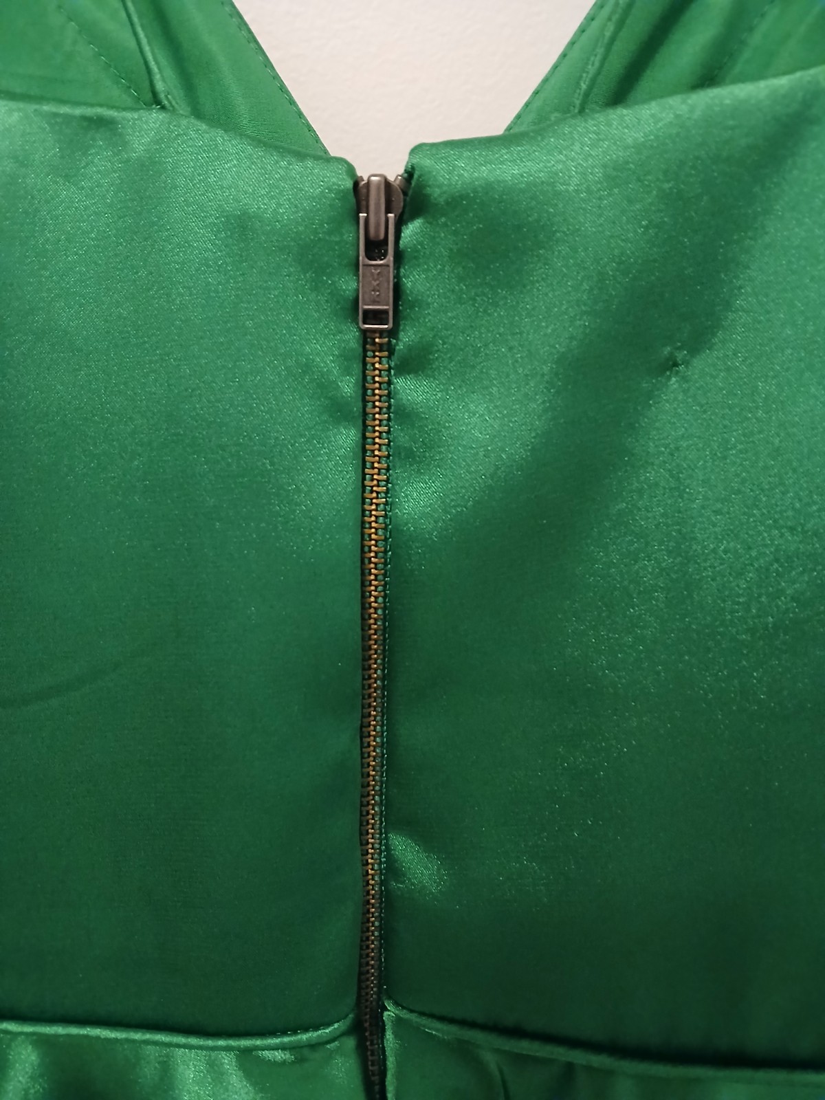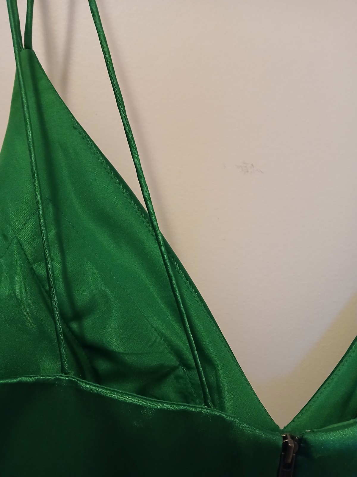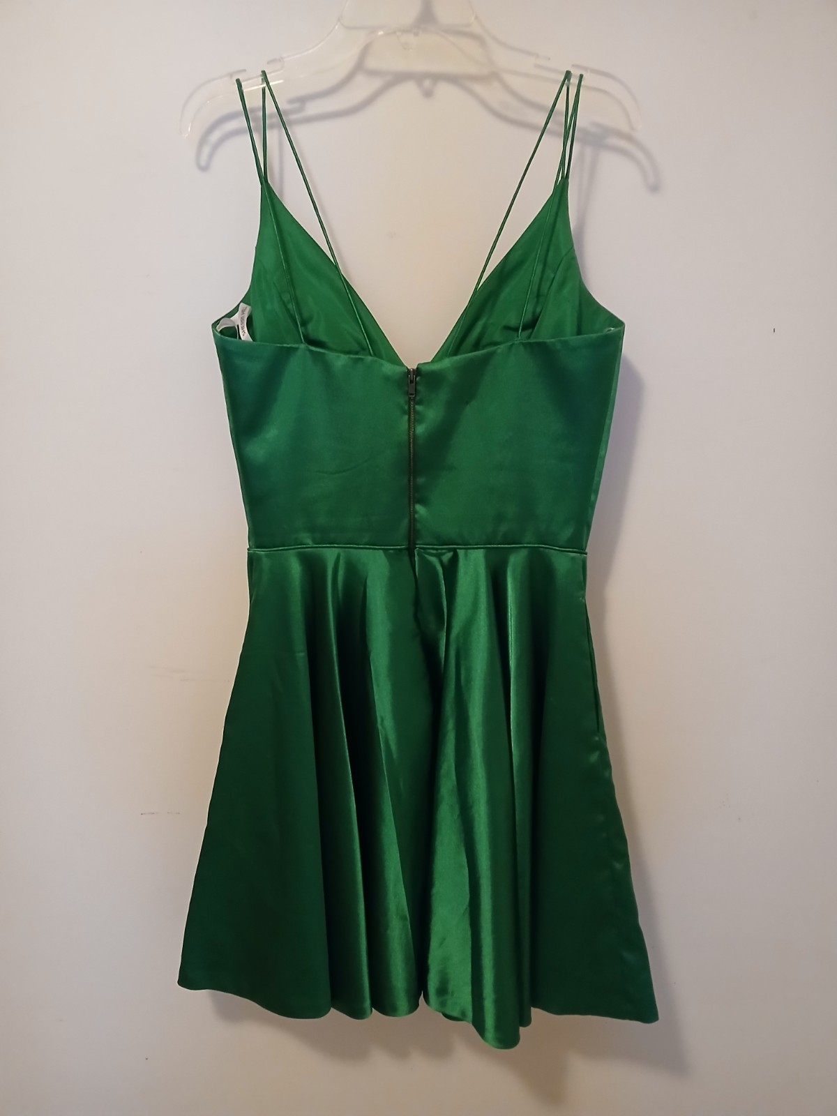 как выглядит SHERRI HILL EUC green stain short homecoming dress size 4 deep v and thin straps фото