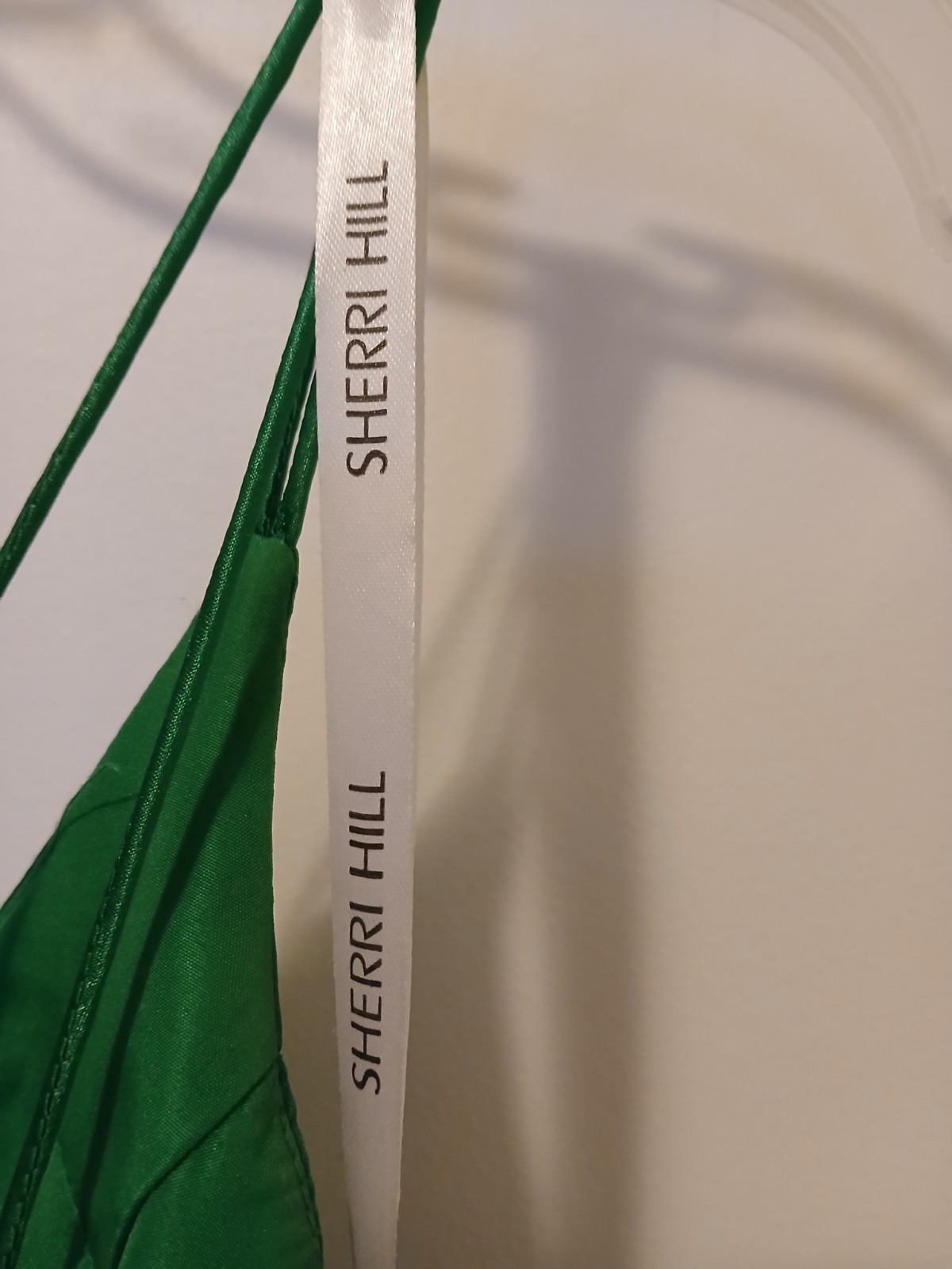 SHERRI HILL EUC green stain short homecoming dress size 4 deep v and thin straps
