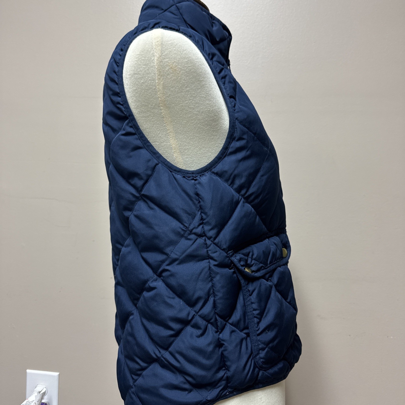 Woolrich Womens Quilted Down Vest Navy Blue Puffer Full Zip Pocket Size Small