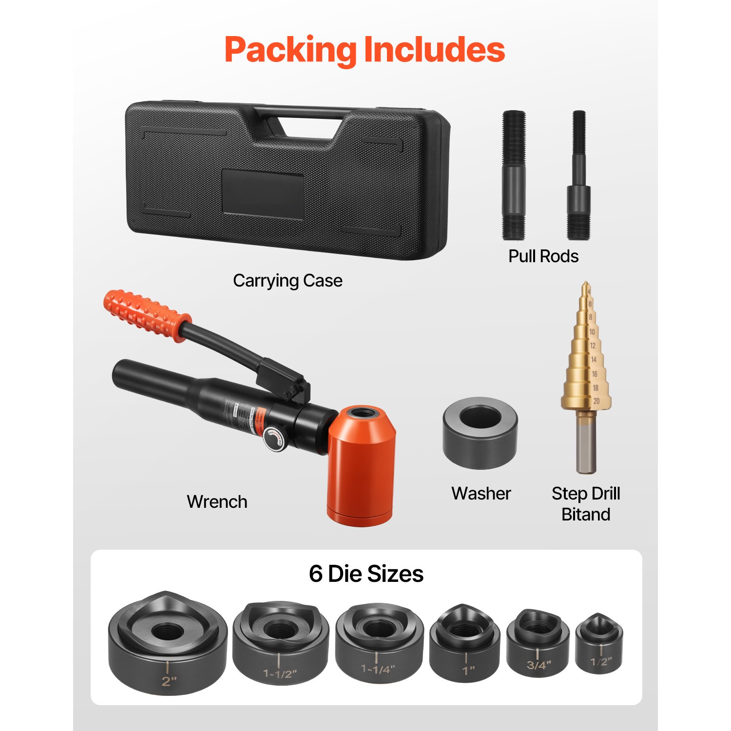 • Uimoso 10-Ton Hydraulic Knockout Punch Set with 6 Dies, 1/2" to 2" Range