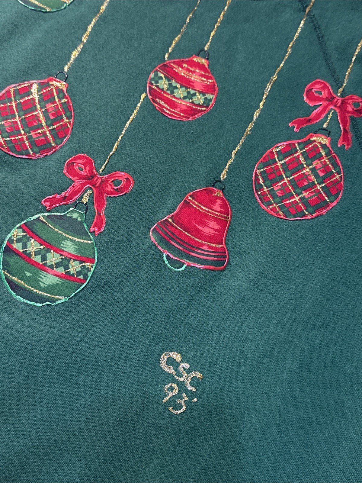 как выглядит Vintage 90s Y2K Painted Green Glitter Ornament Christmas Sweatshirt XL Tacky фото
