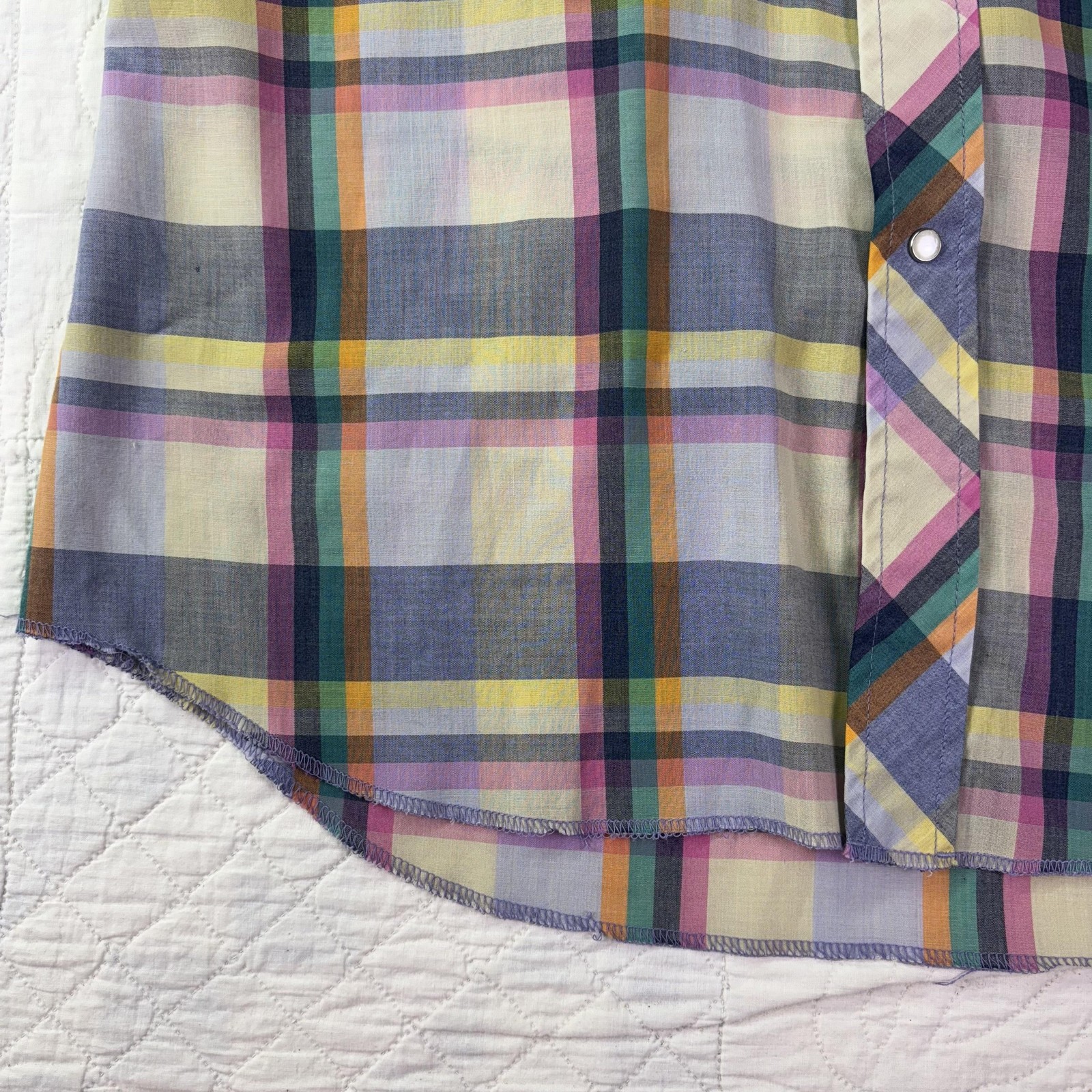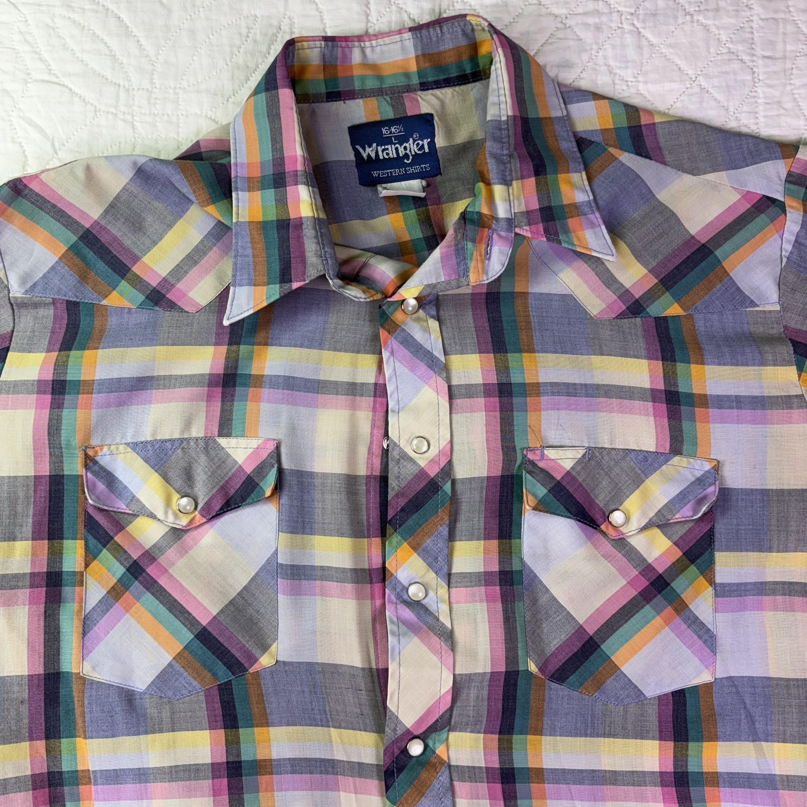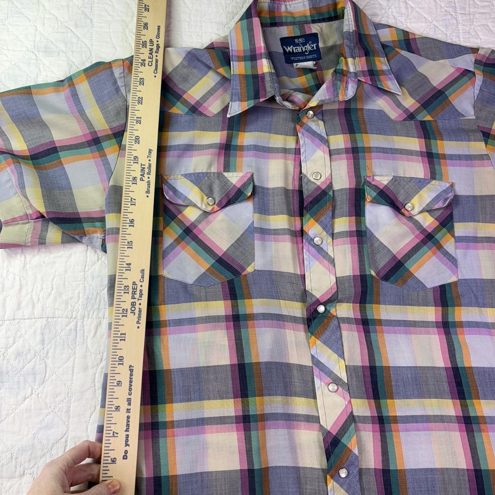Vintage Wrangler Shirt Mens Large Multicolor Plaid Pearl Snap Western 80s