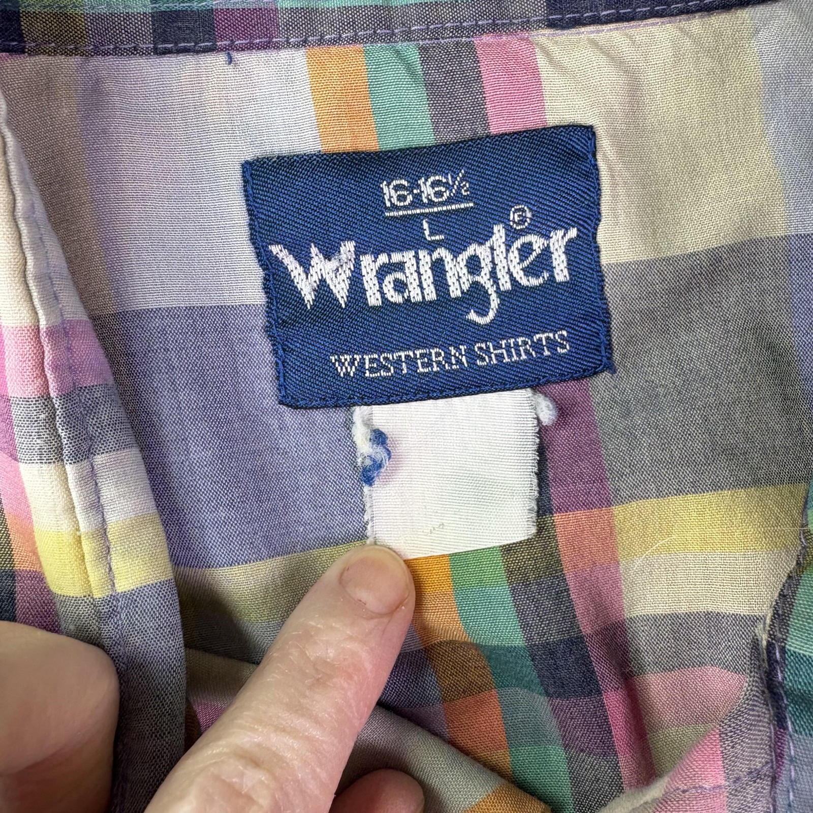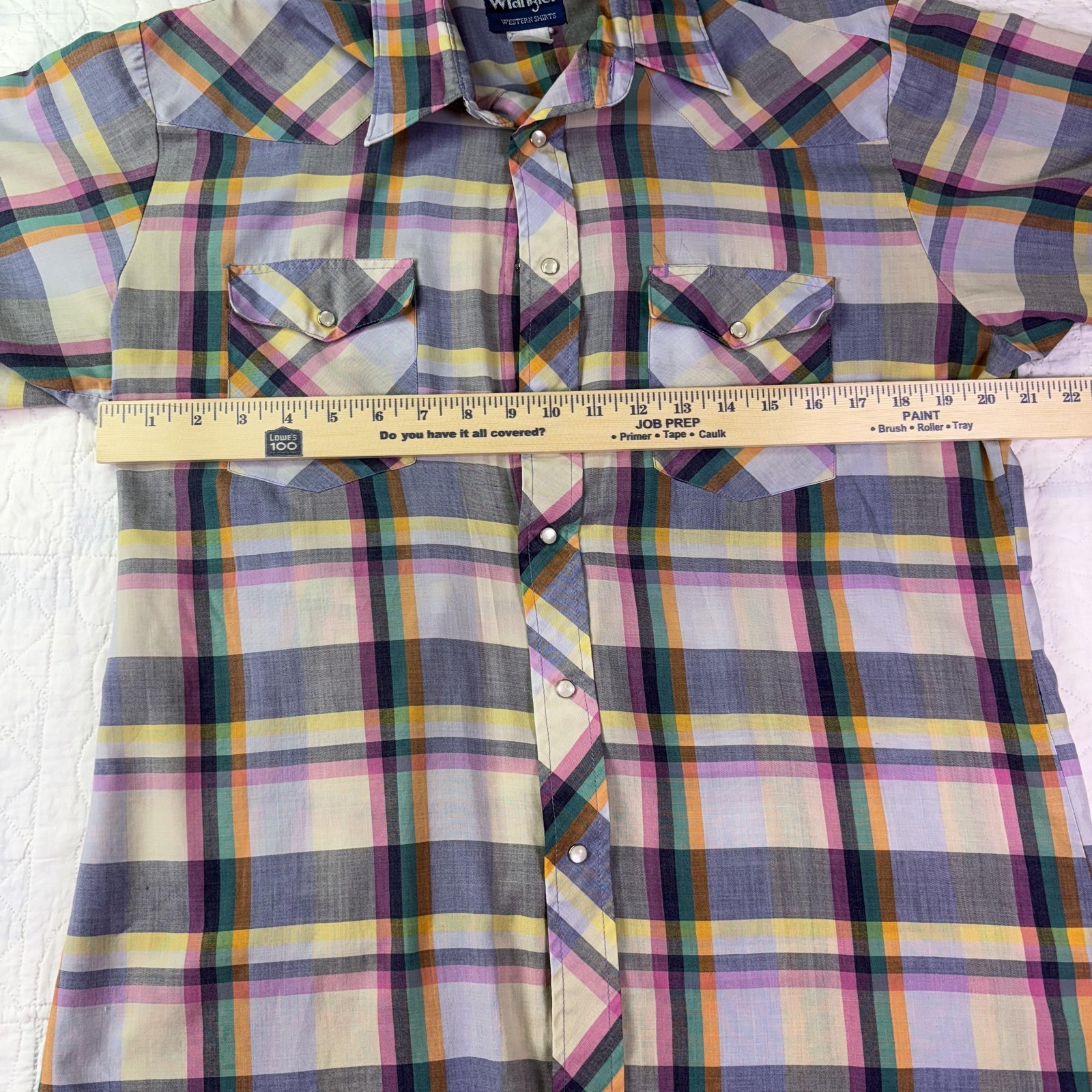 как выглядит Vintage Wrangler Shirt Mens Large Multicolor Plaid Pearl Snap Western 80s фото