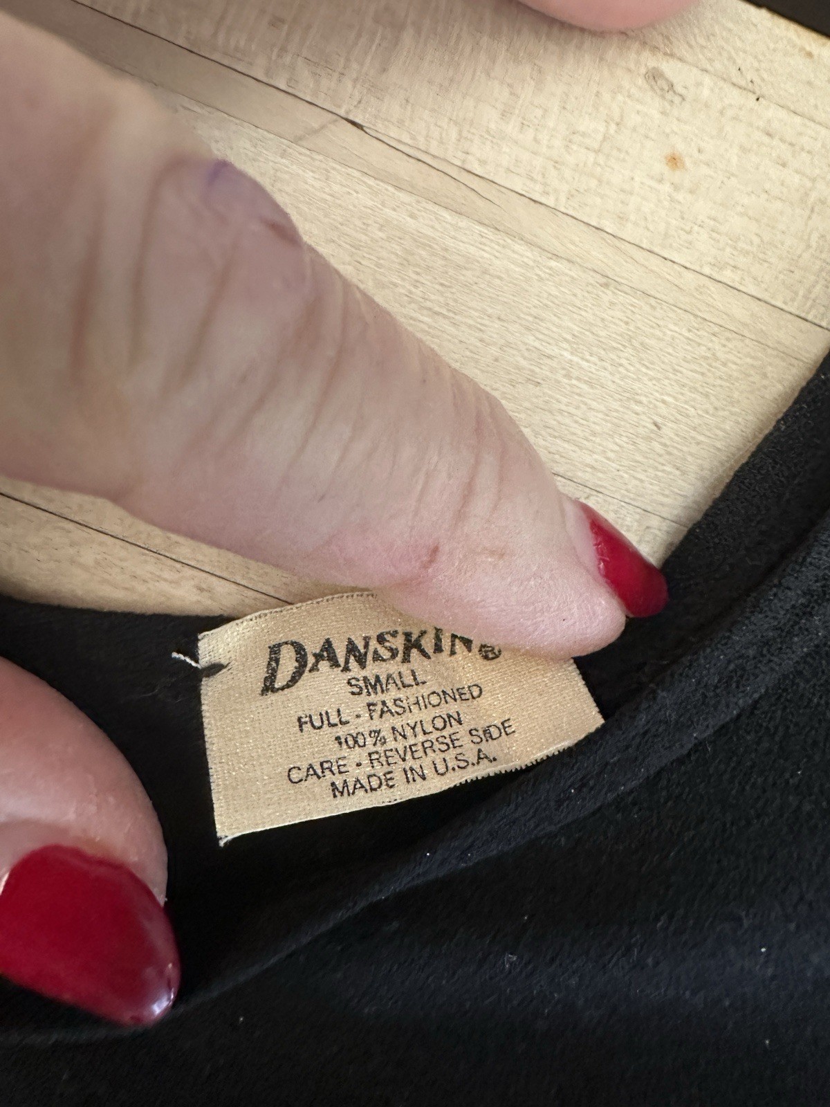 Nos Vintage Danskin Long Sleeve Bodysuit Leotard Black USA Nylon Spandex sz S
