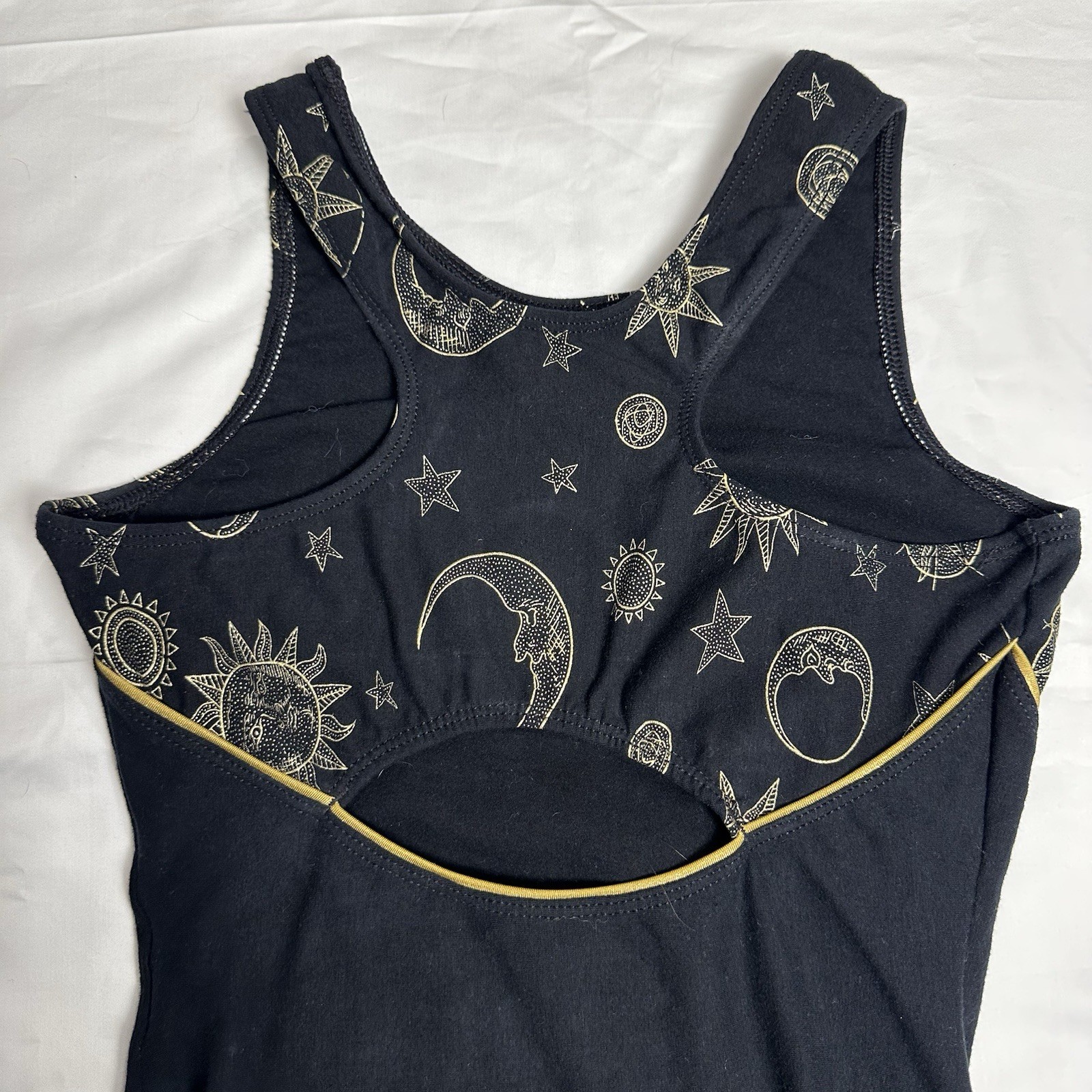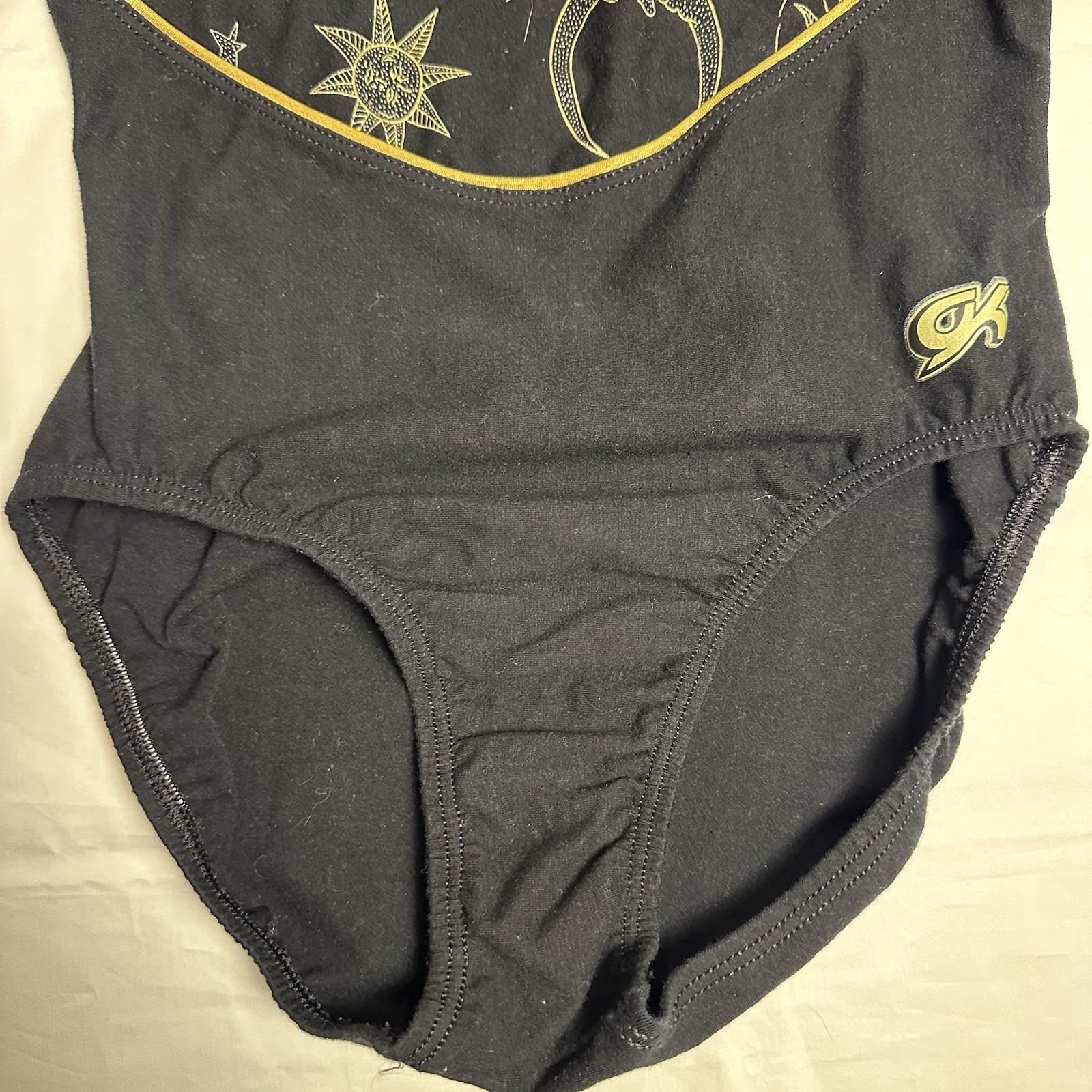 GK Elite Black Gold Sun Moon Tank Style Practice Gymnastics Leotard SA