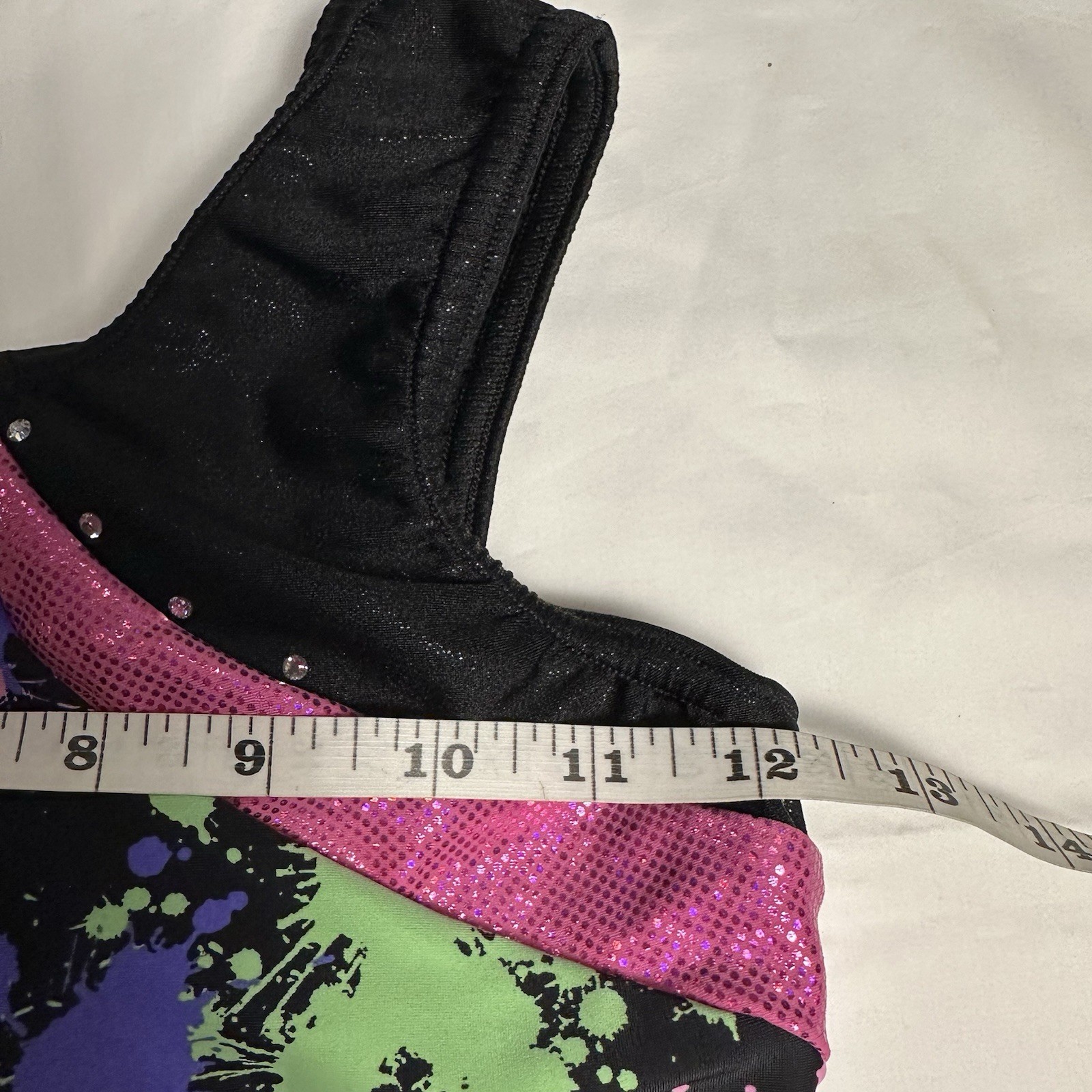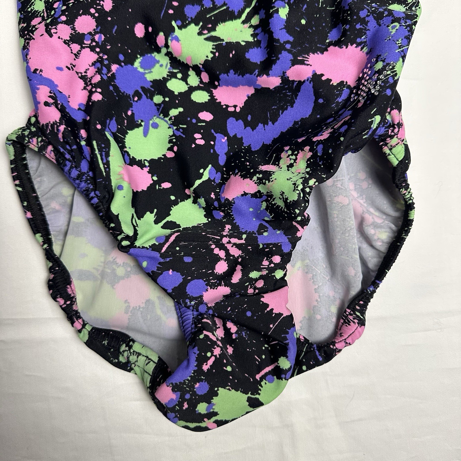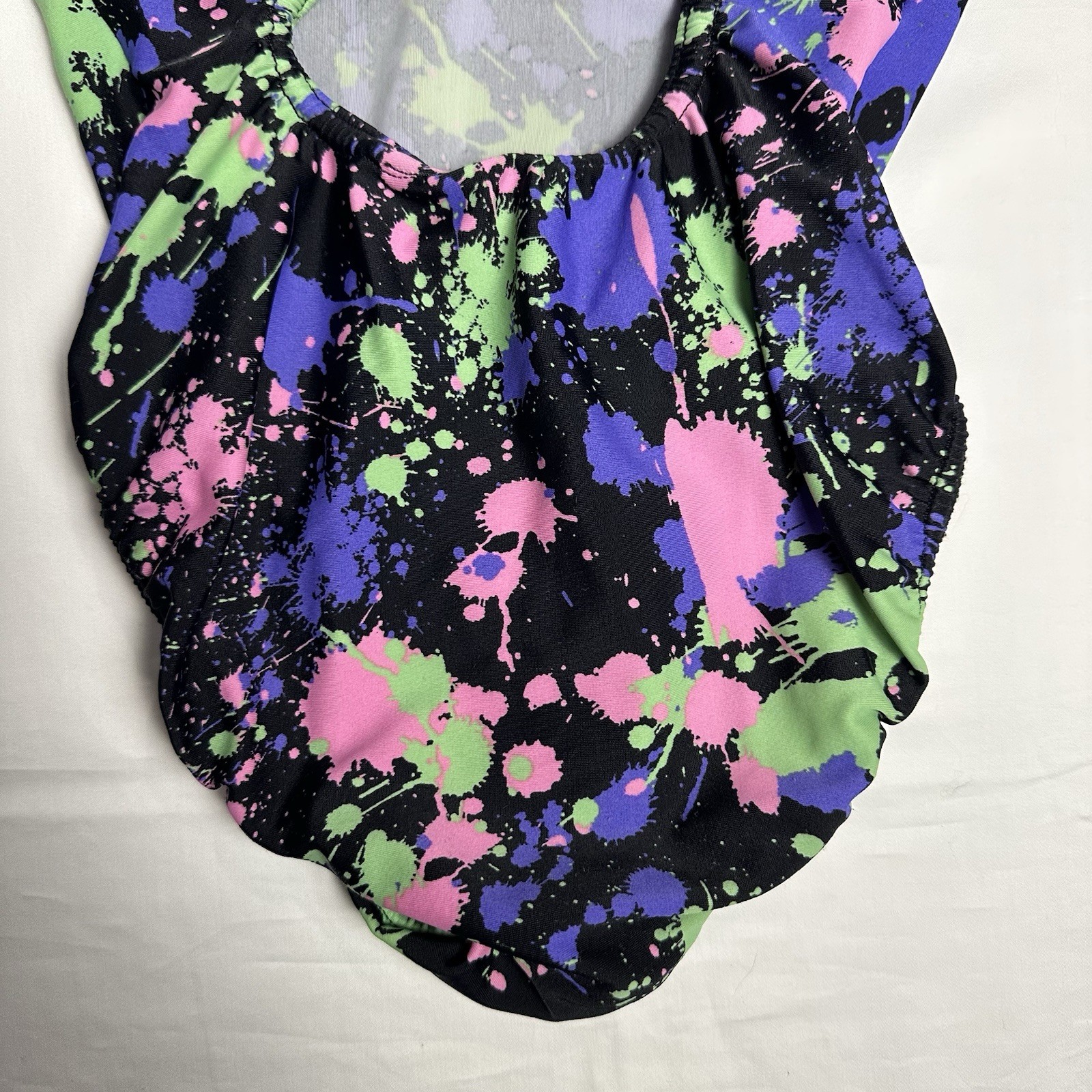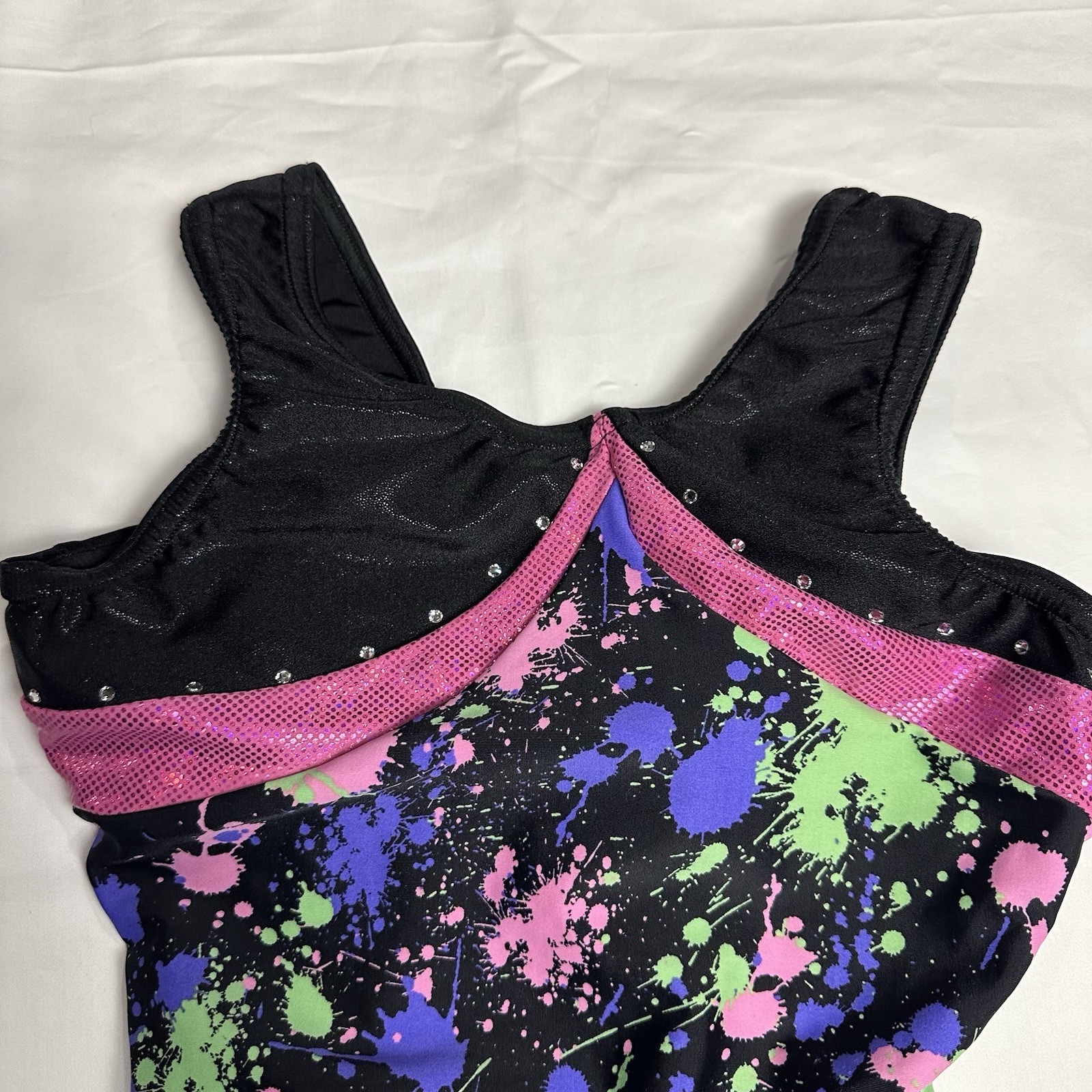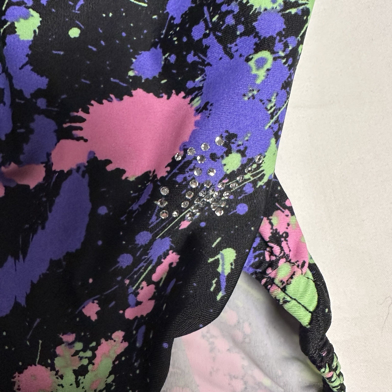 JAMWEAR Multicolor Paint Splatter Rhinestone Keyhole Gymnastics Leotard CL