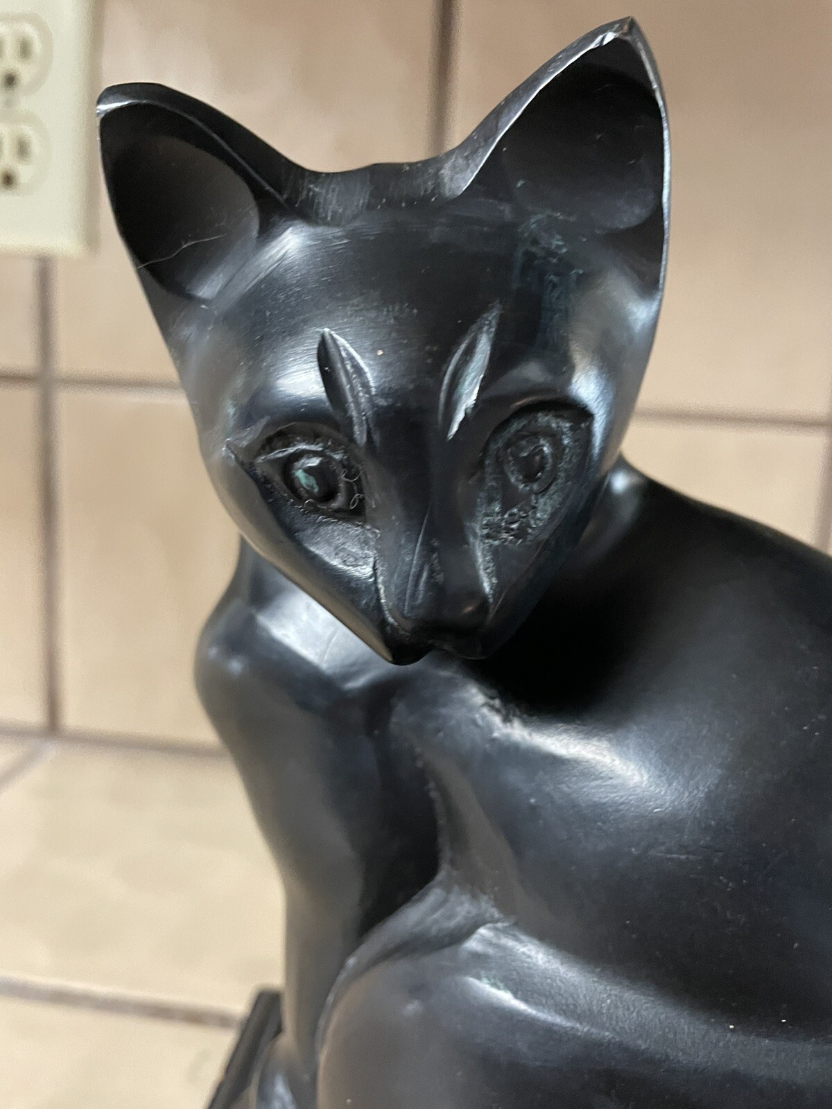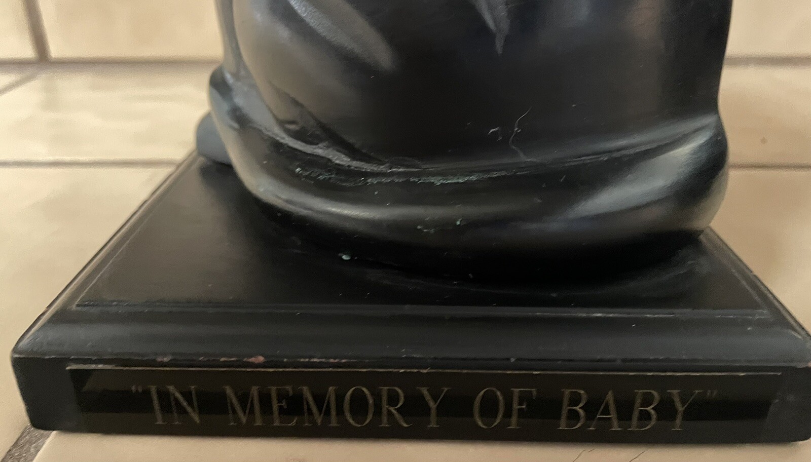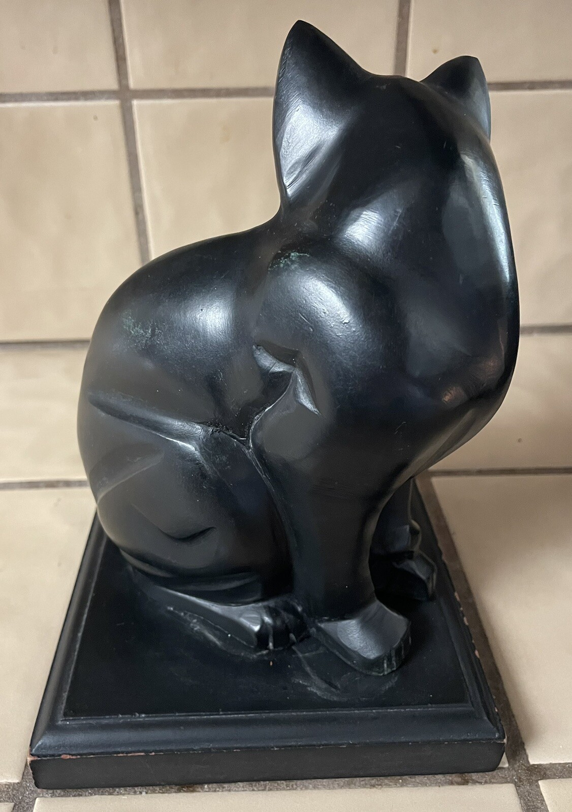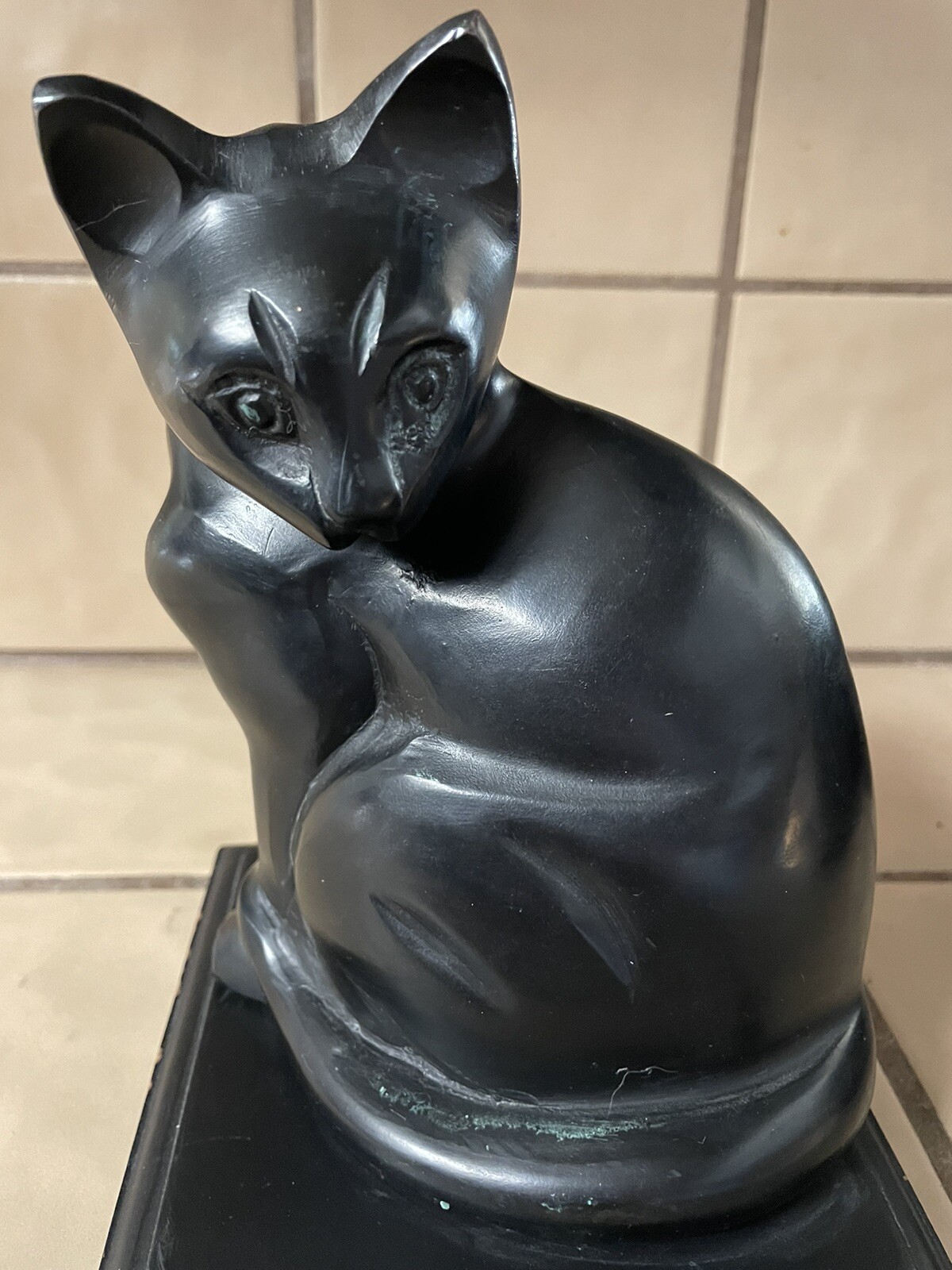 CAST IRON KITTY CAT FIGURINE MEMORIAL IN LOVING MEMORY STATUE W/ STAND